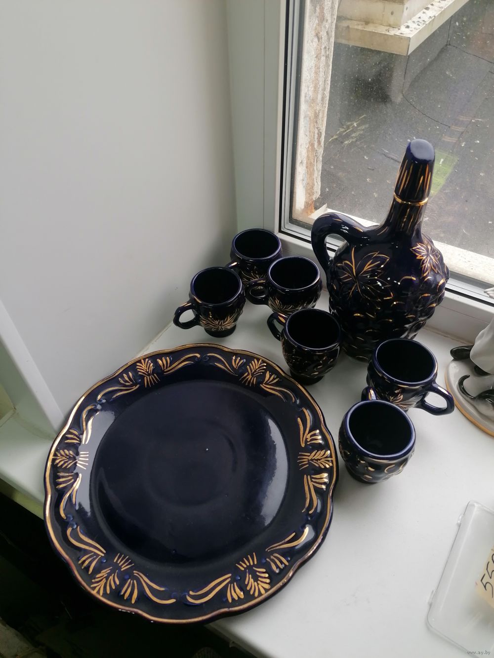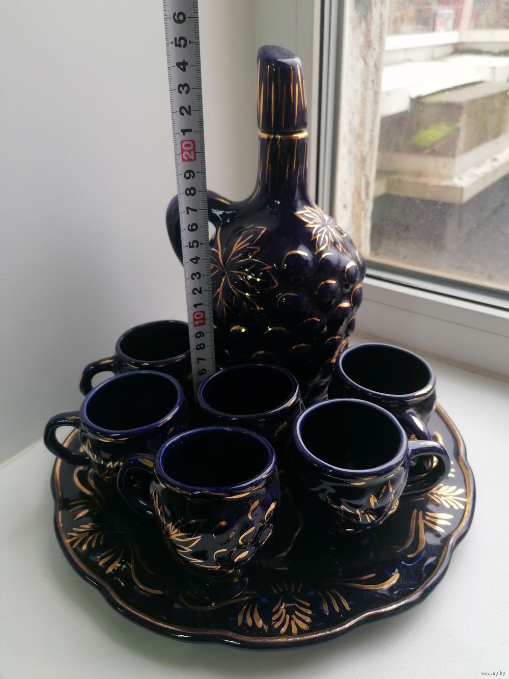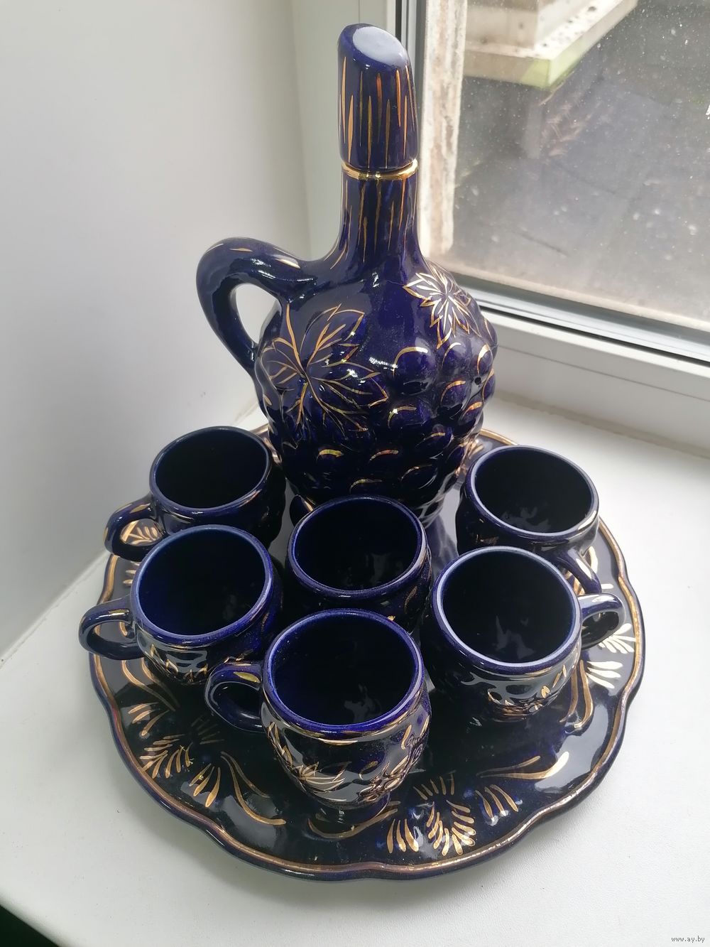 Графин, 6 кружечек и поднос, кобальт, фарфор