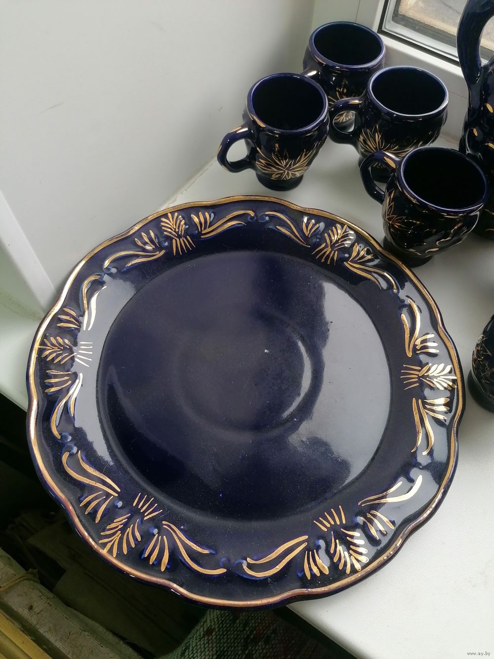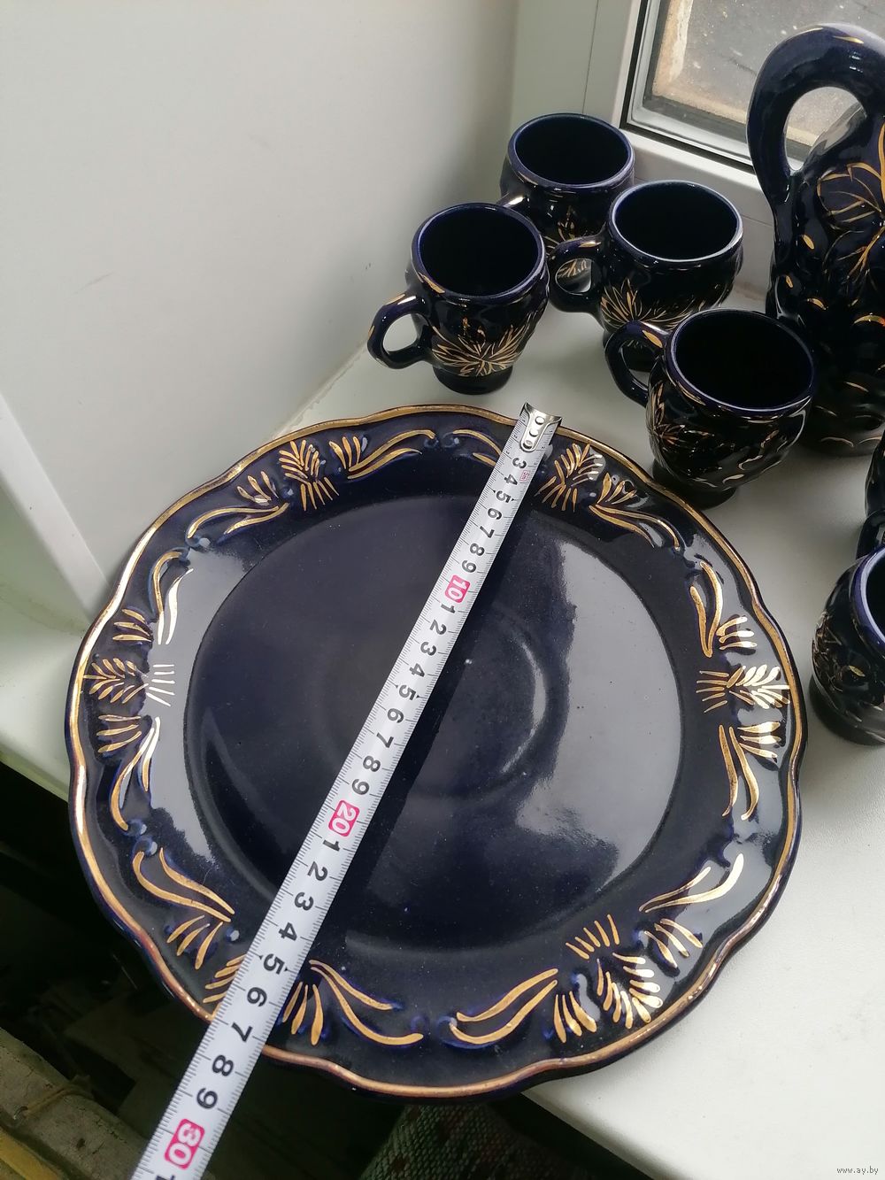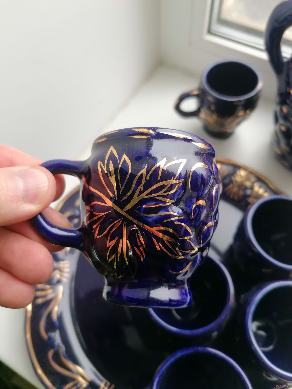 Графин, 6 кружечек и поднос, кобальт, фарфор