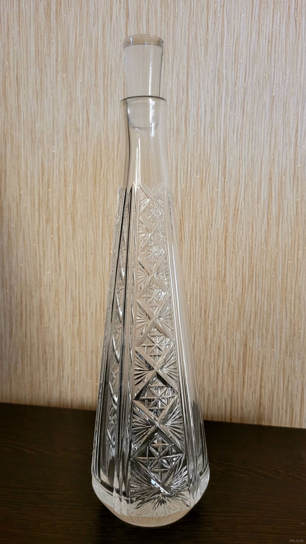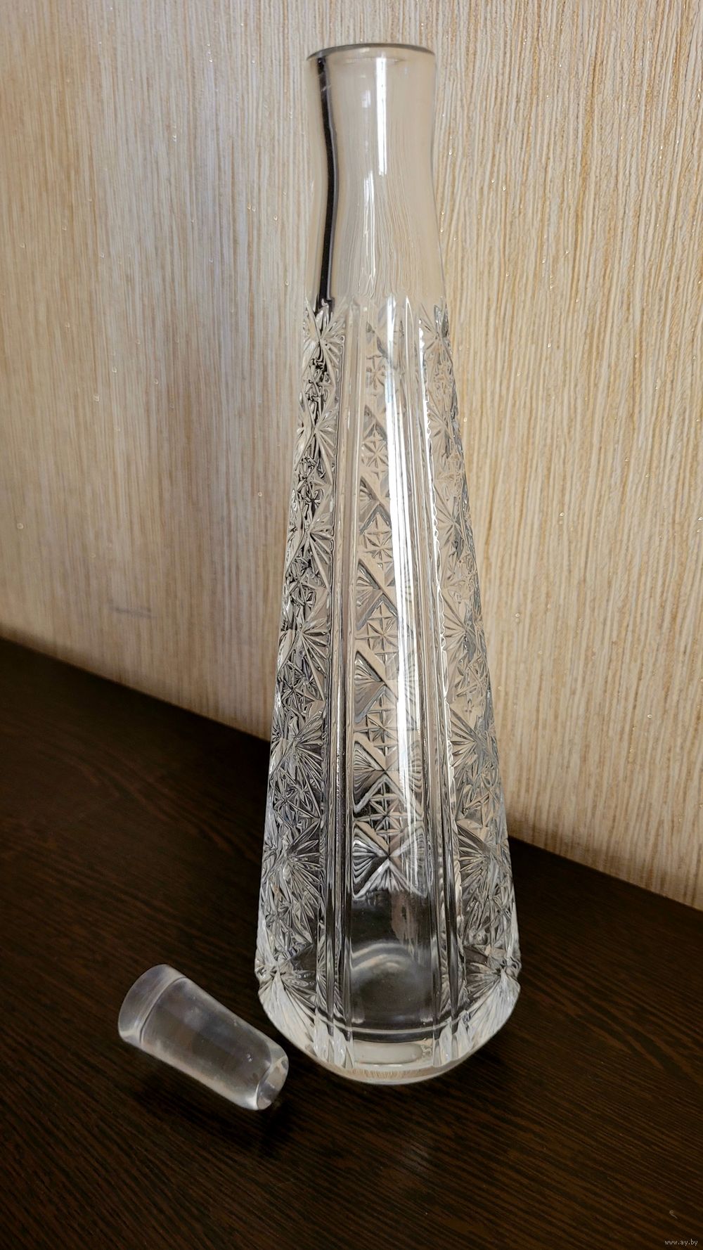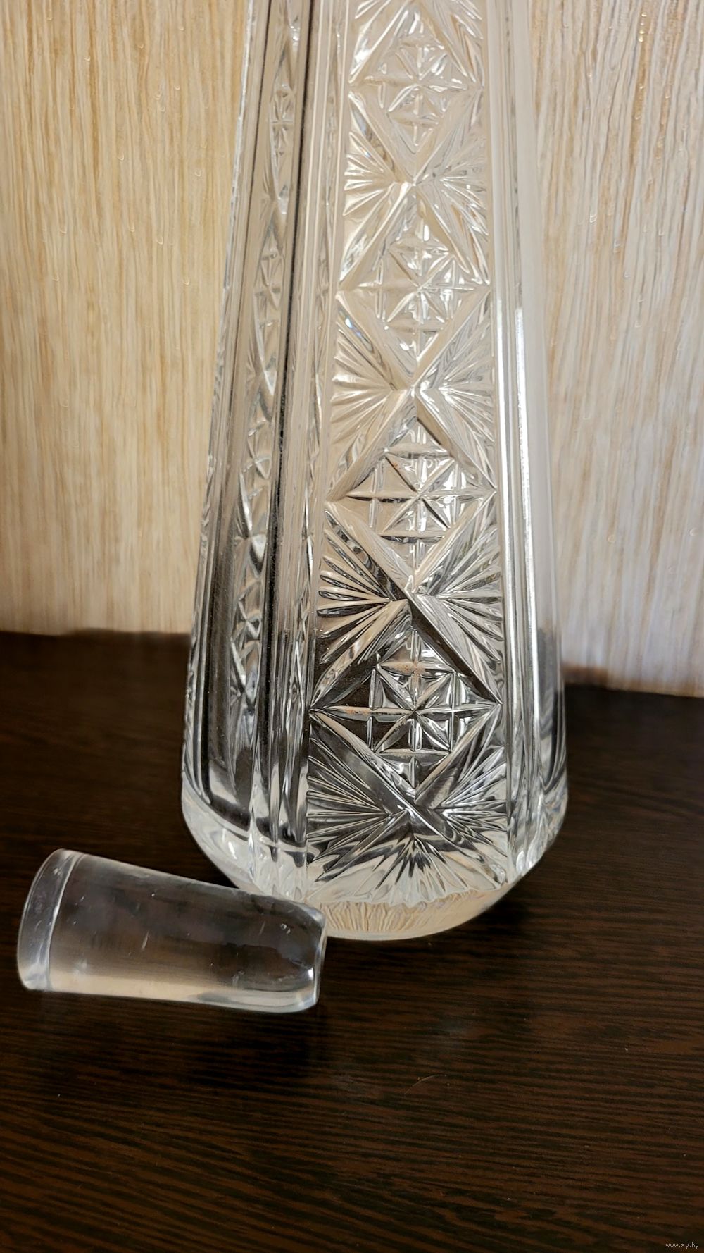 Изящный хрустальный графин на 450 мл, алмазная грань. Высота с пробкой 32 см.