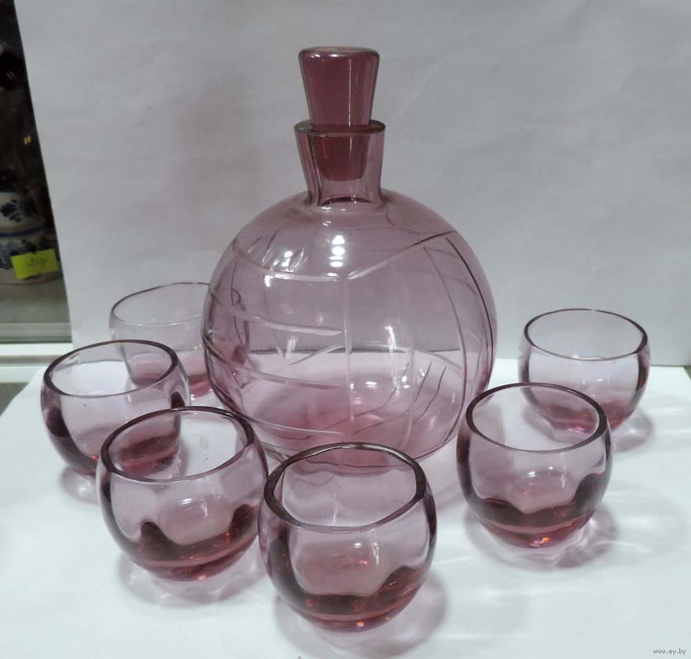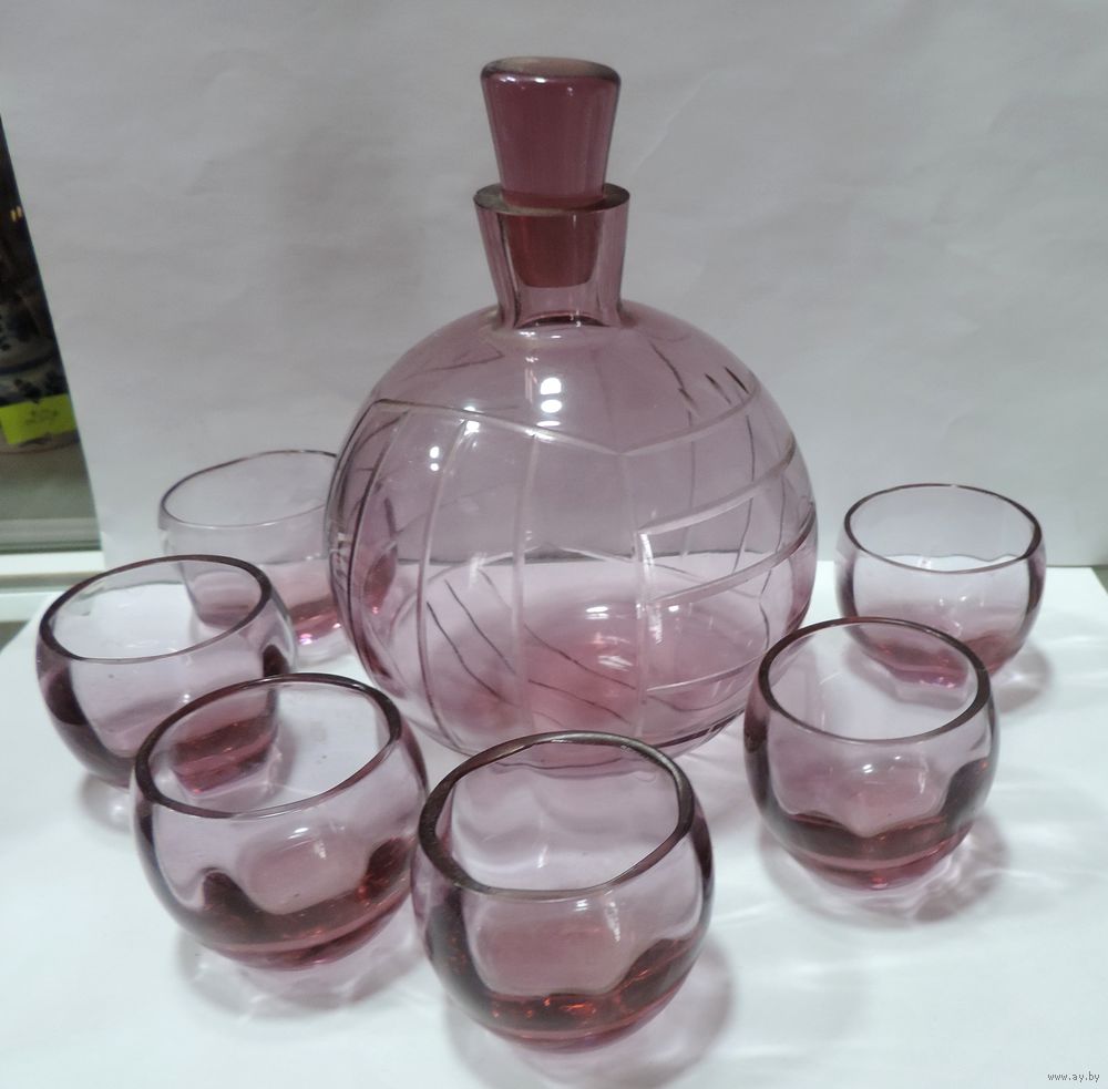 Графин и 6 рюмок "Мячик" 70-е годы. На 0.5 литра. СССР.