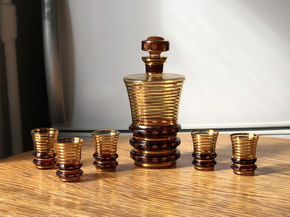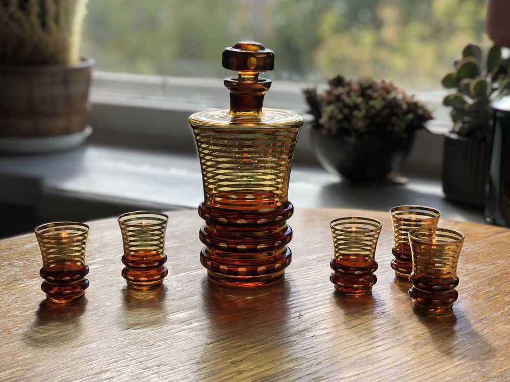 Графин и рюмки Чехословакия цветное стекло винтаж