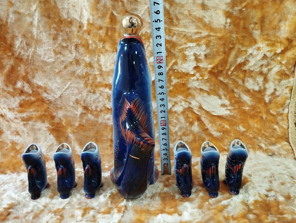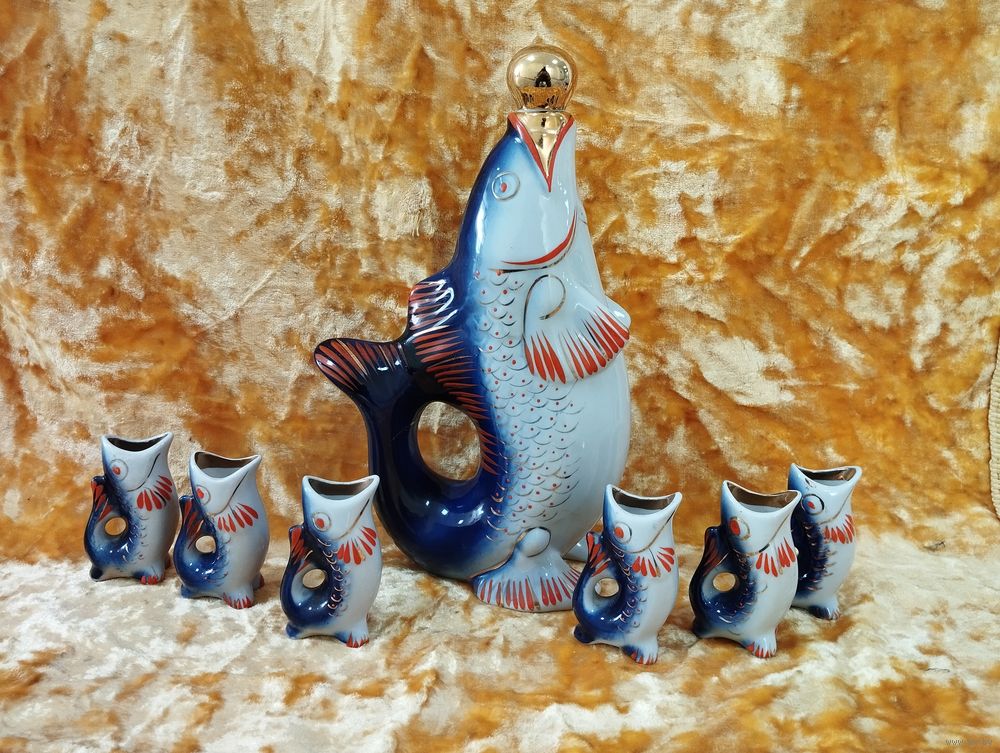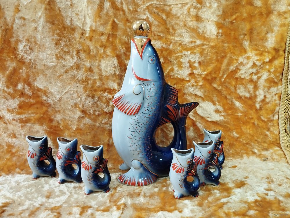Графин и стопки Рыбки кобальтовые, Полонский з-д. СССР