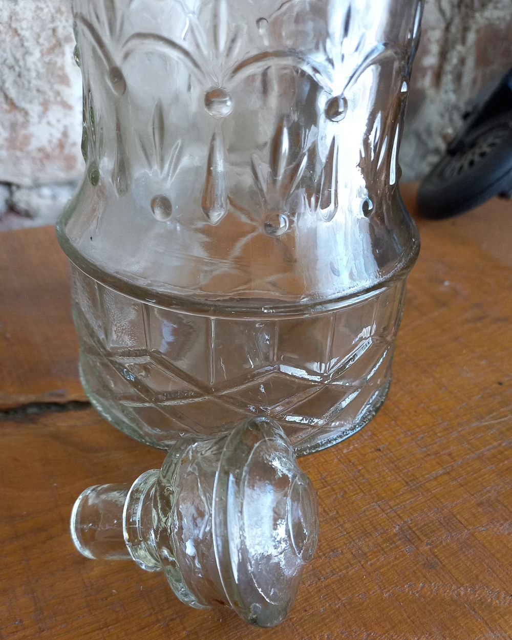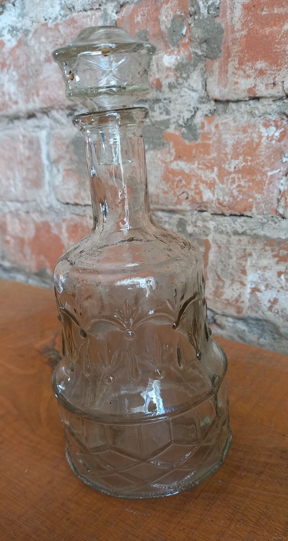Графин Флорештский стекольный завод, Флорешты, Молдавская ССР 40-50 - е г.г., клеймо. Высота с пробкой - 22 см. Толстое стекло с узором, состояние отличное.