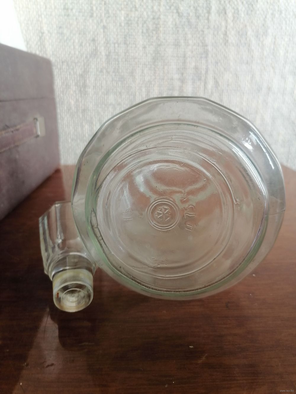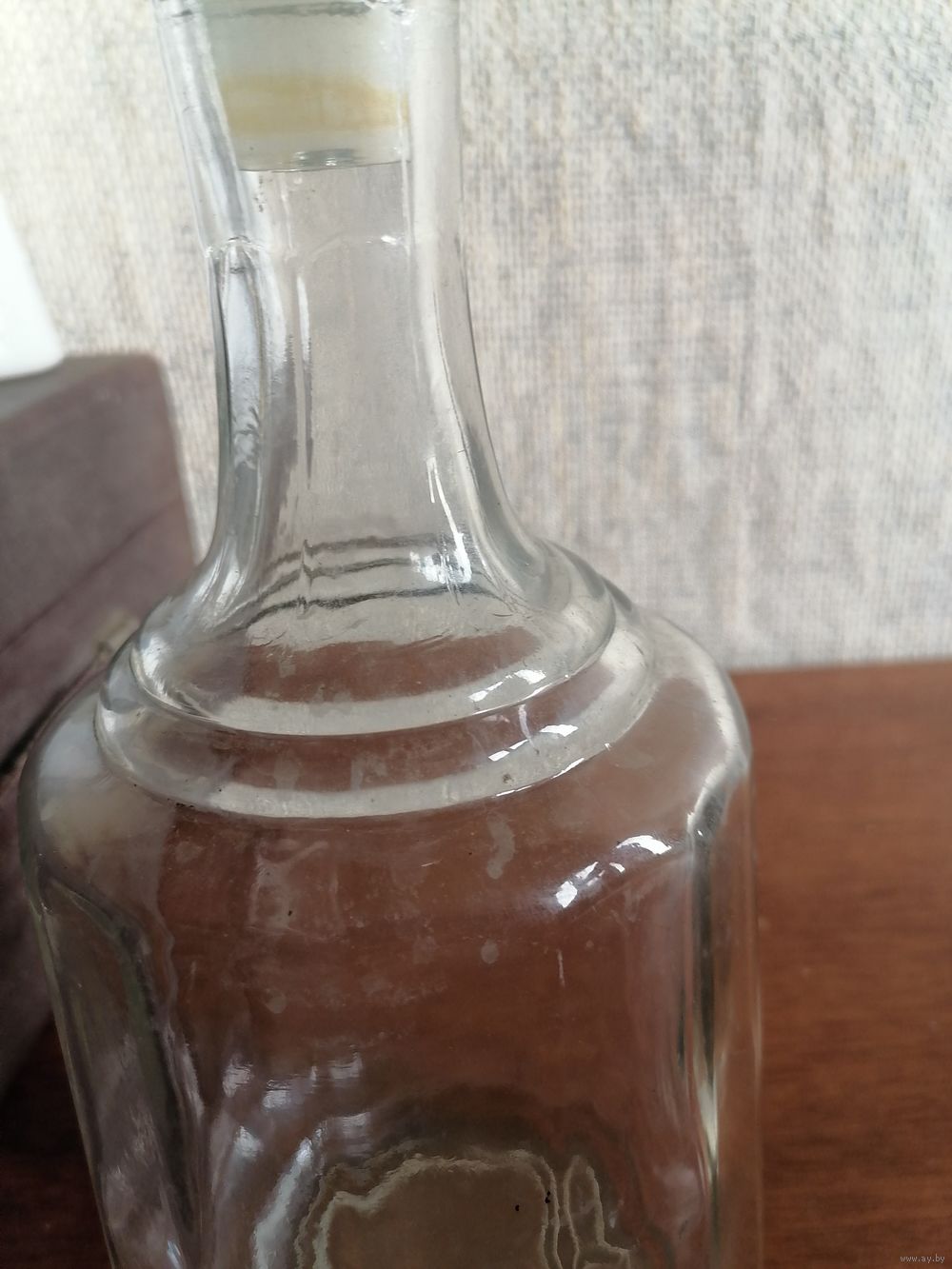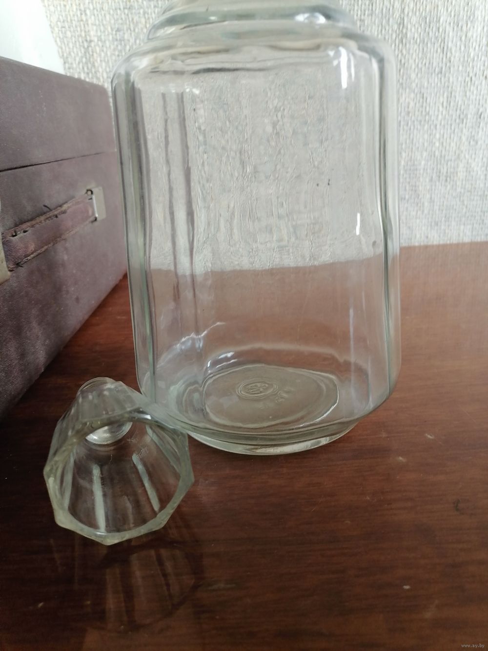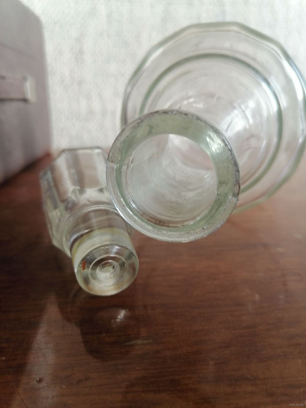 Графин СССР.Председательский.Ребристый с пробкой.Сколов и трешин нет.Нюанс только в том что диаметр нижней части пробки чуть меньше чем диаметр горлышка графина.