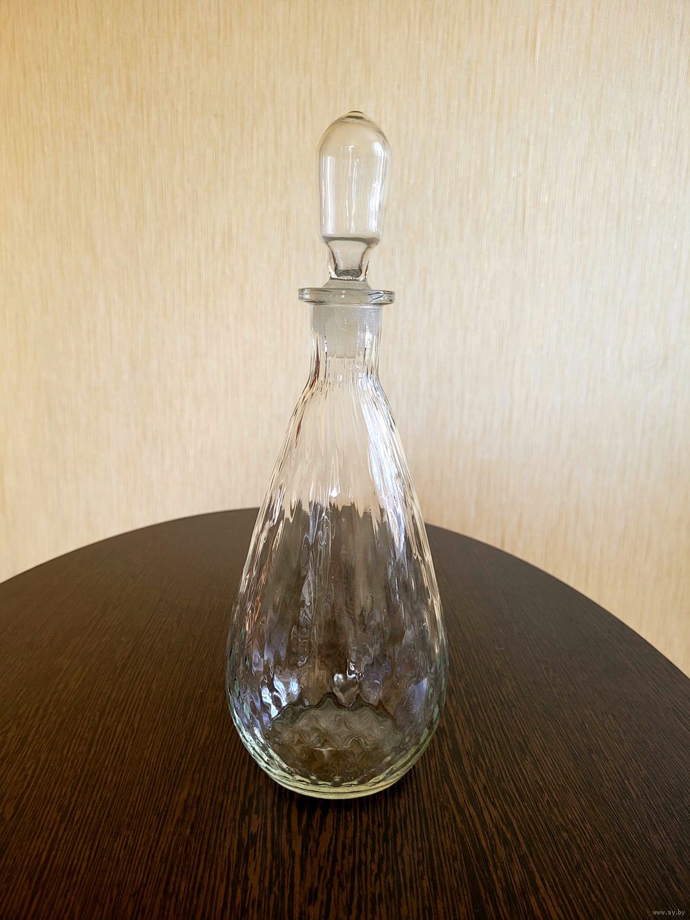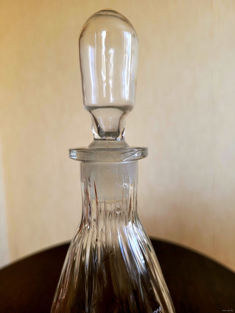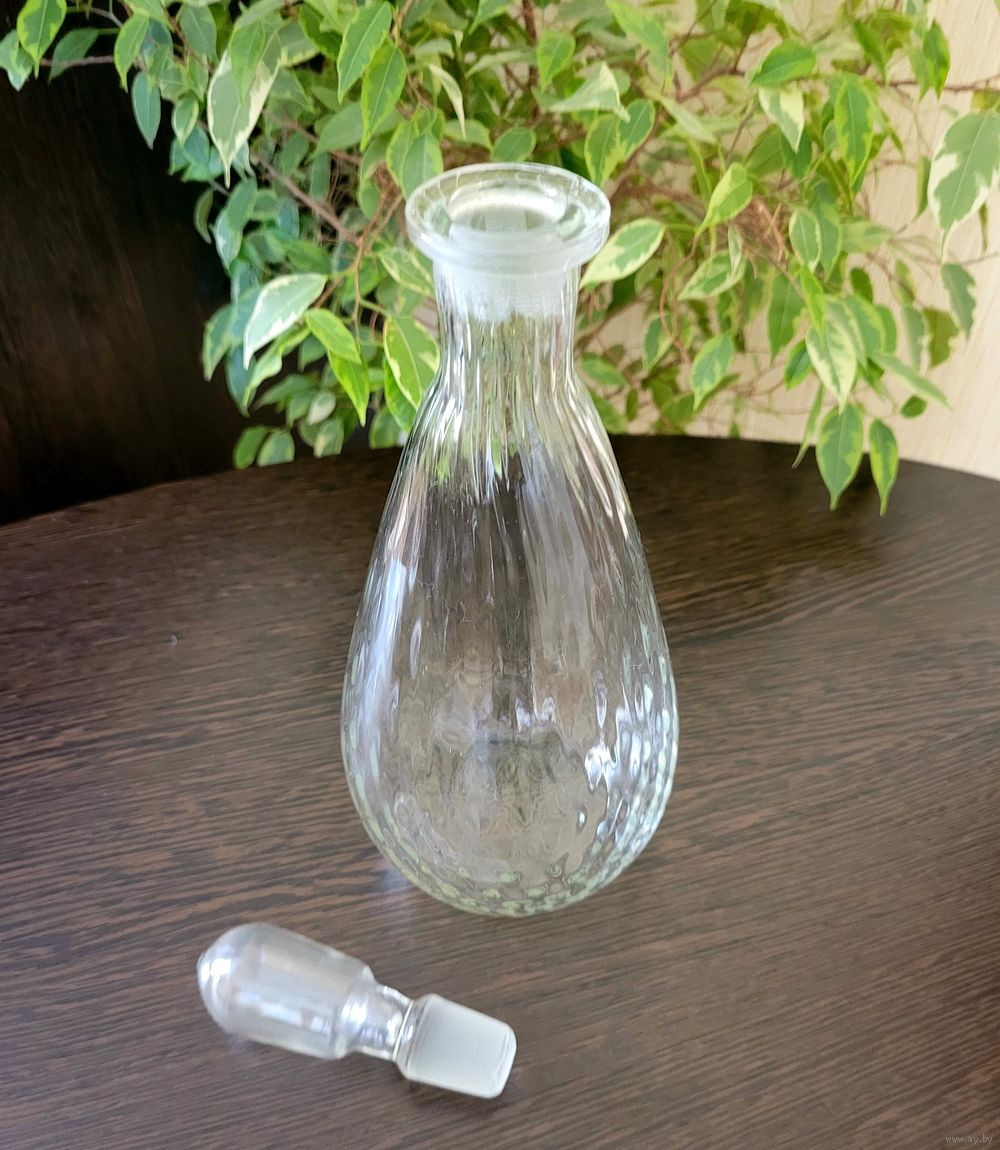 Винтажный стеклянный графин с притёртой пробкой, высота 30 см. Сколов и трещин не обнаружено, на горлышке - нюансы производства.