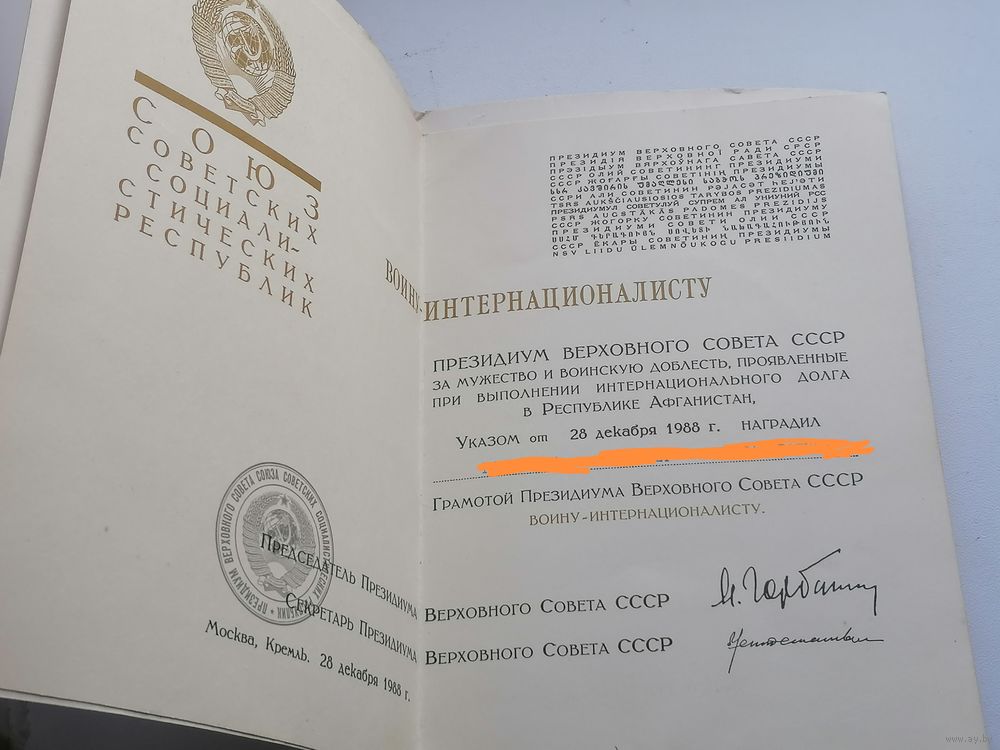 Грамота президиума Верховного совета СССР лот 2