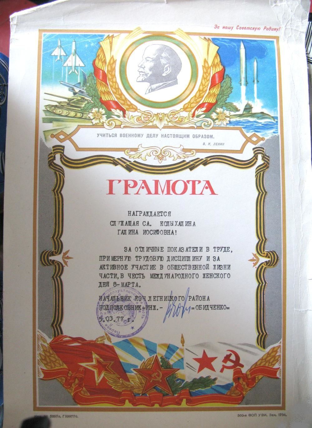 Грамота в честь 8 марта, 1977г