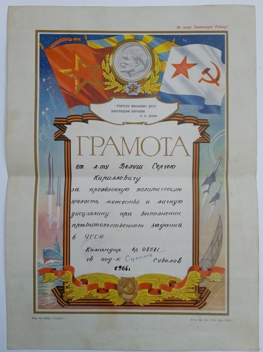 Грамота. Воина-интернационалиста. ЧССР. 1968г.