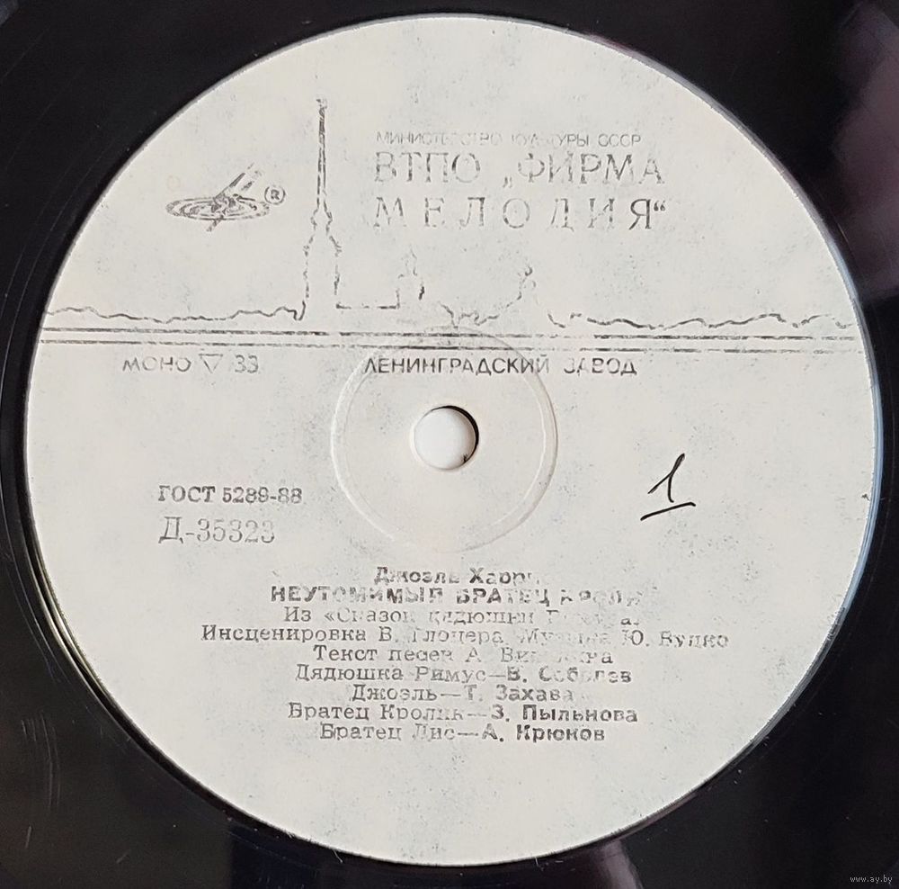 Грампластинка "Джоэль Харрис - Неутомимый Братец Кролик"