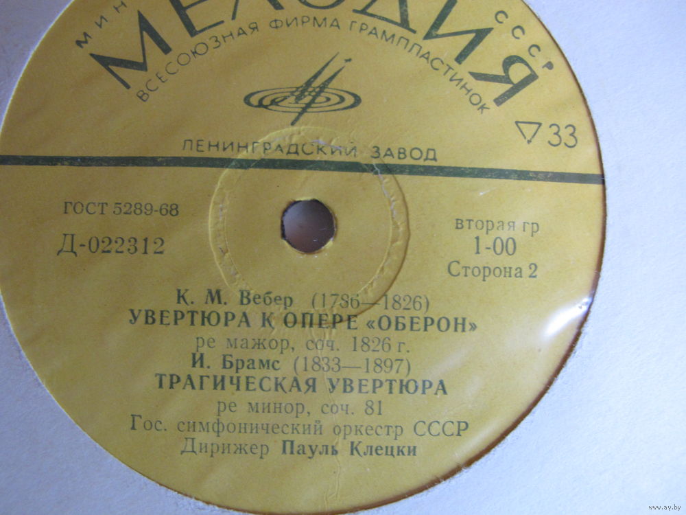 Грампластинка Ф.Шуберт. Симфония No 8; К.Вебер. Увертюра к опере Оберон; И.Брамс. Трагическая увертюра (дир. Пауль Клецки)