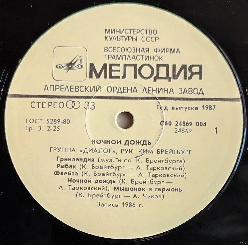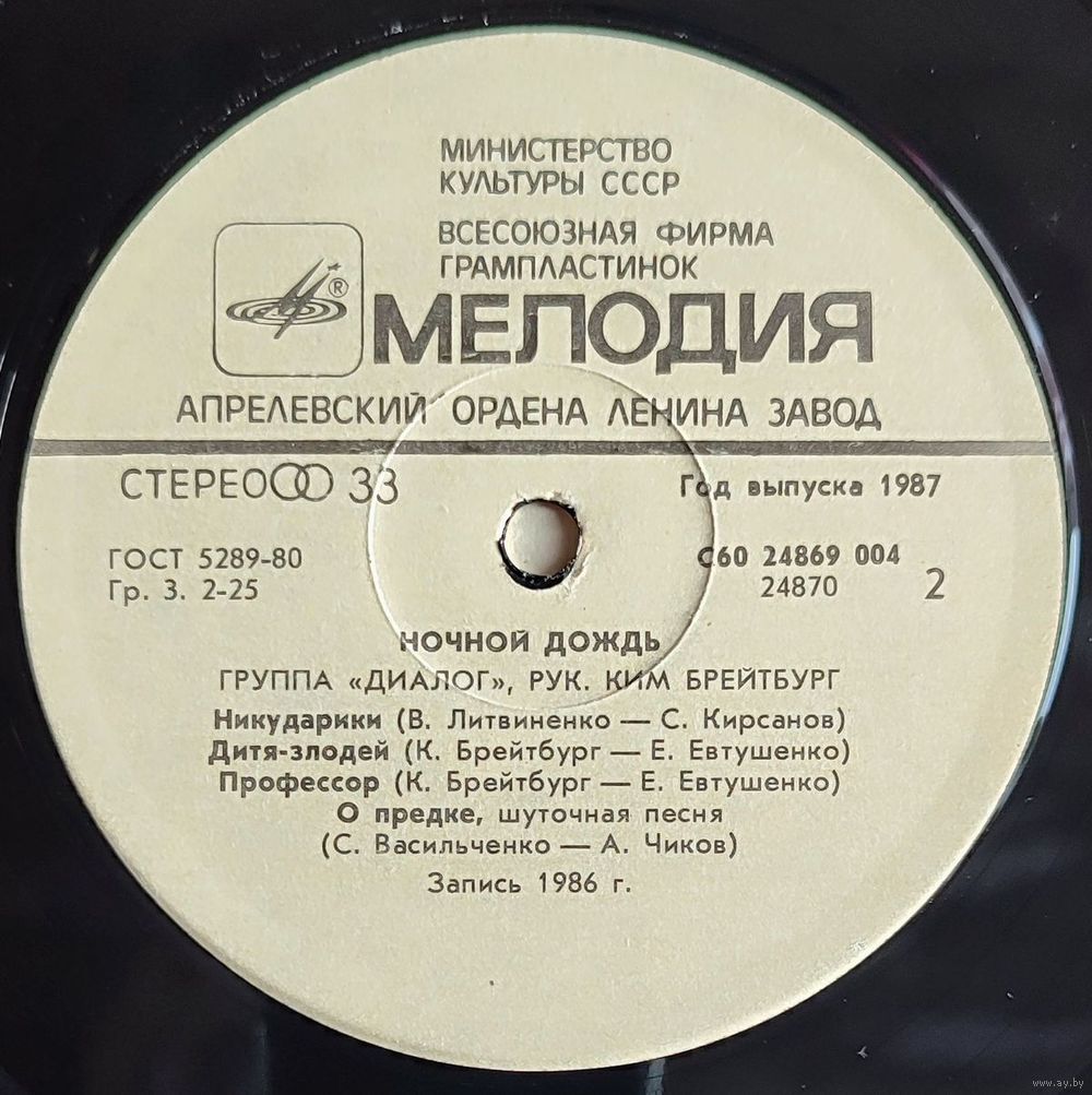 Грампластинка "Группа "Диалог" - Ночной дождь"