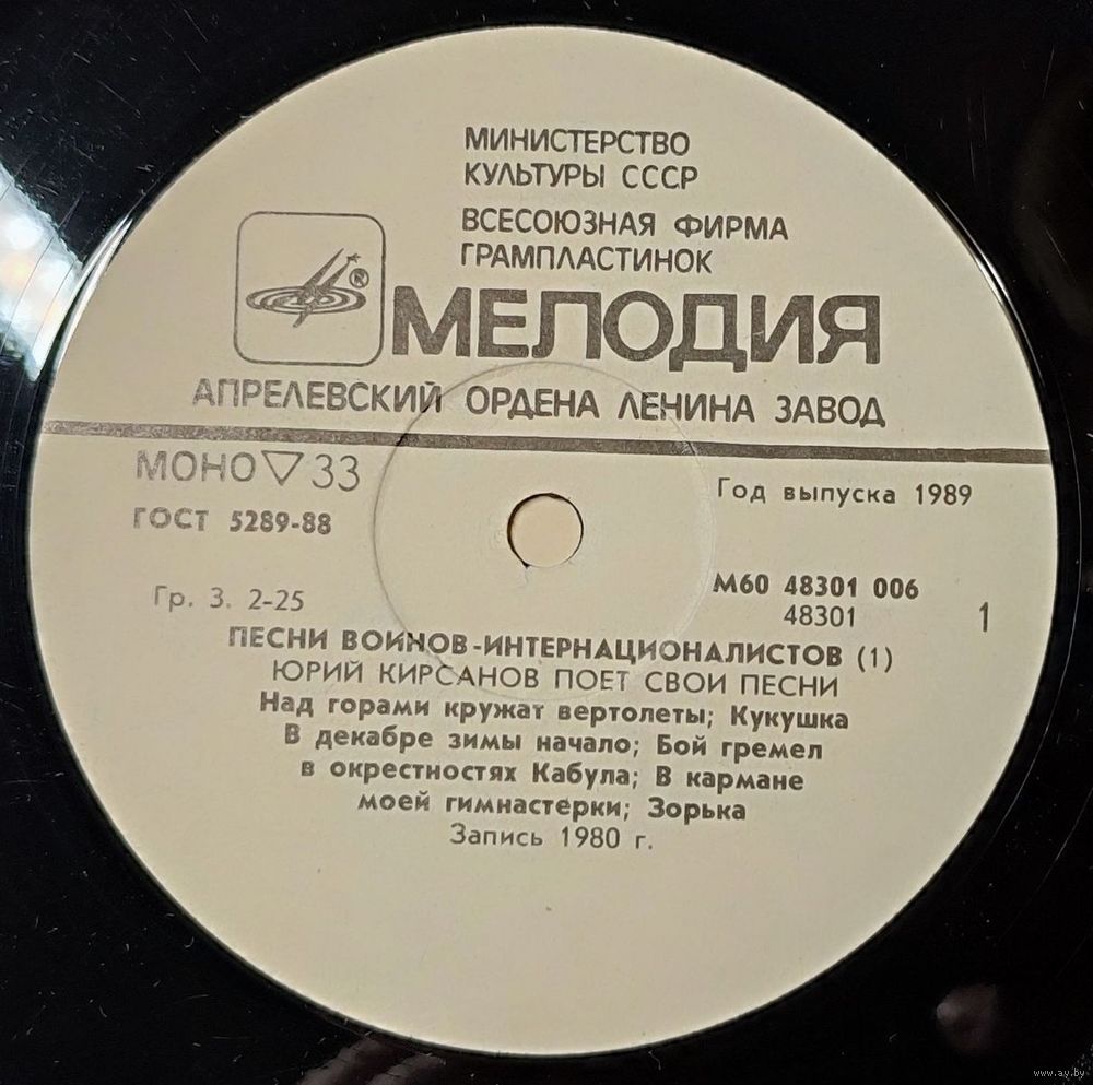 Грампластинка "Песни воинов-интернациалистов - Время выбрало нас" (часть 1)