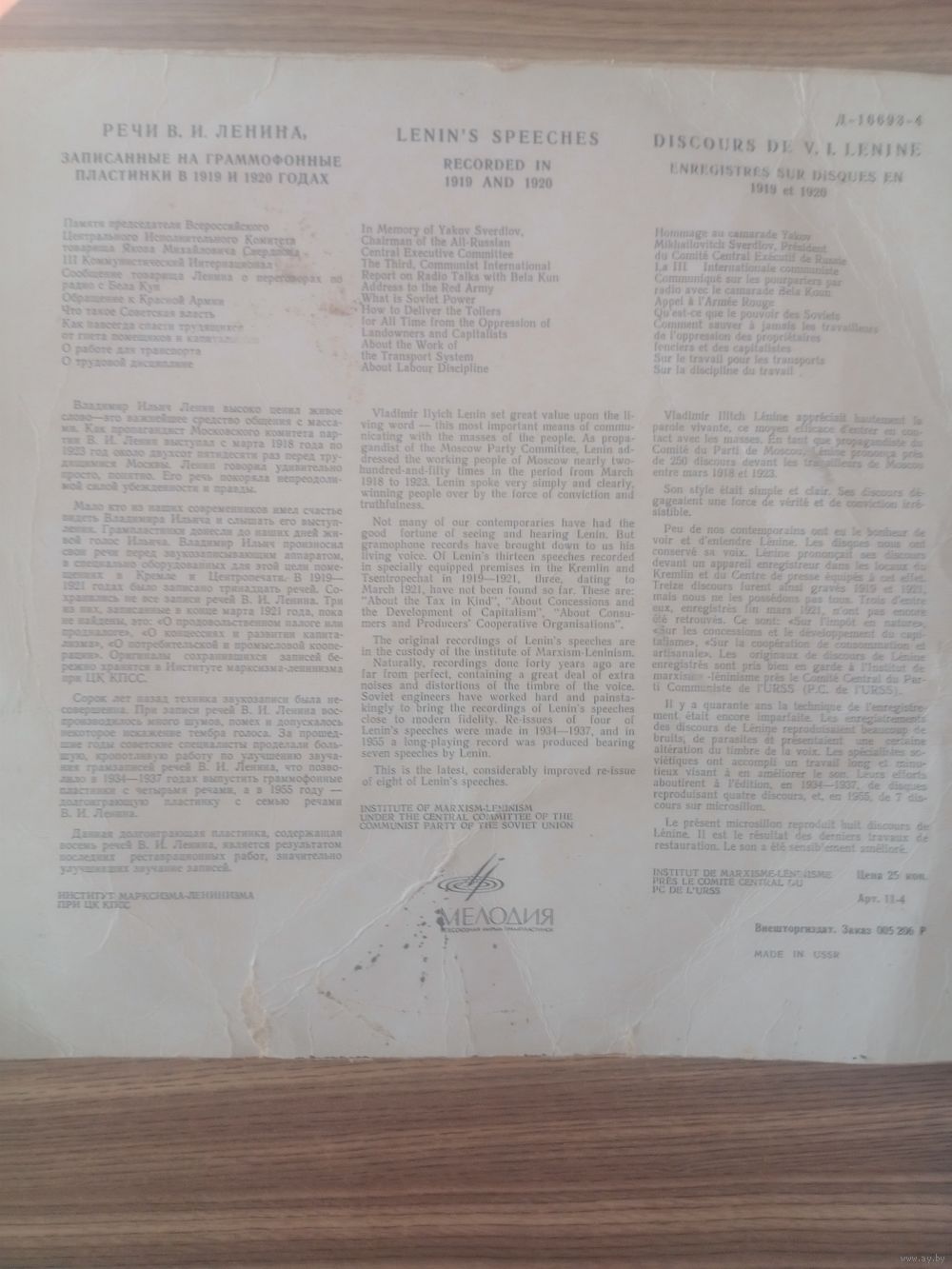 Совместно фирма Мелодия и Внешторгиздат . Аннотация на 3 языках.
