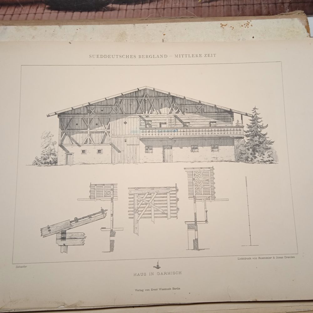 ГРАВЮРА. 19 век. HAUS IN GARMISCH. Berlin. Германия 19век. 48 х32см. РАСПРОДАЖА КОЛЛЕКЦИИ.