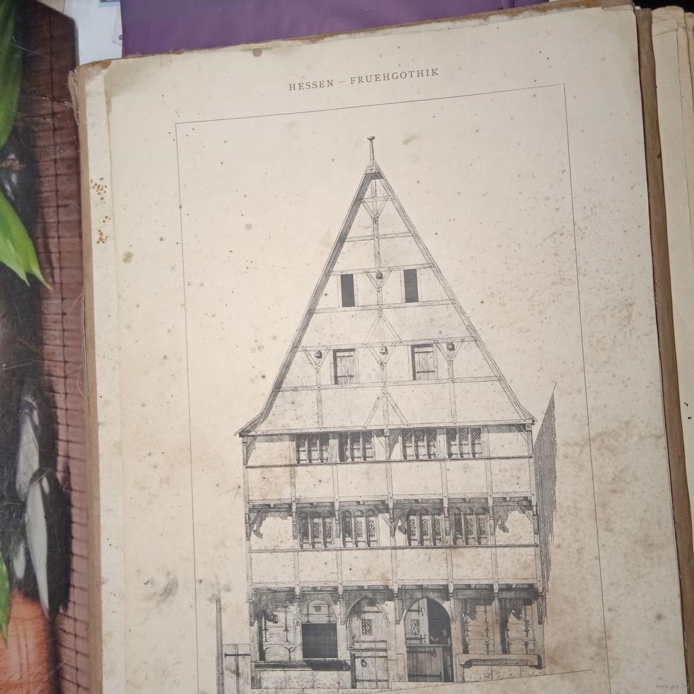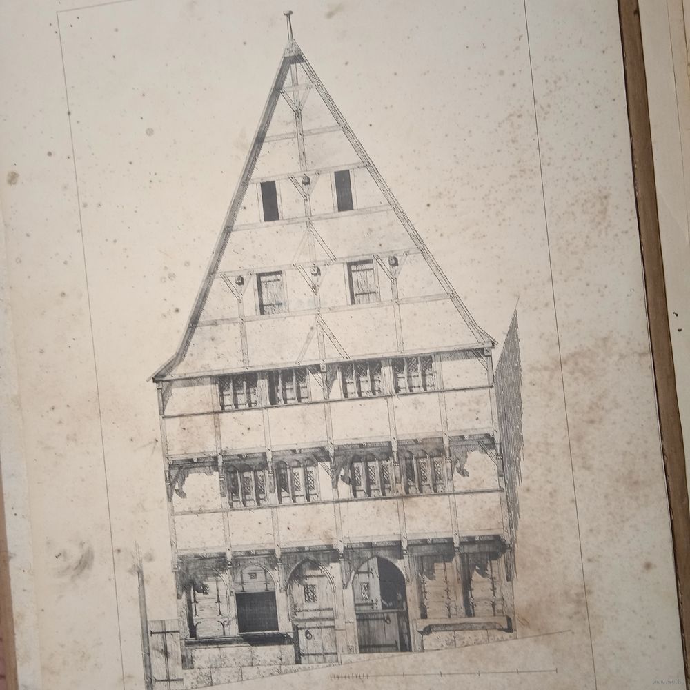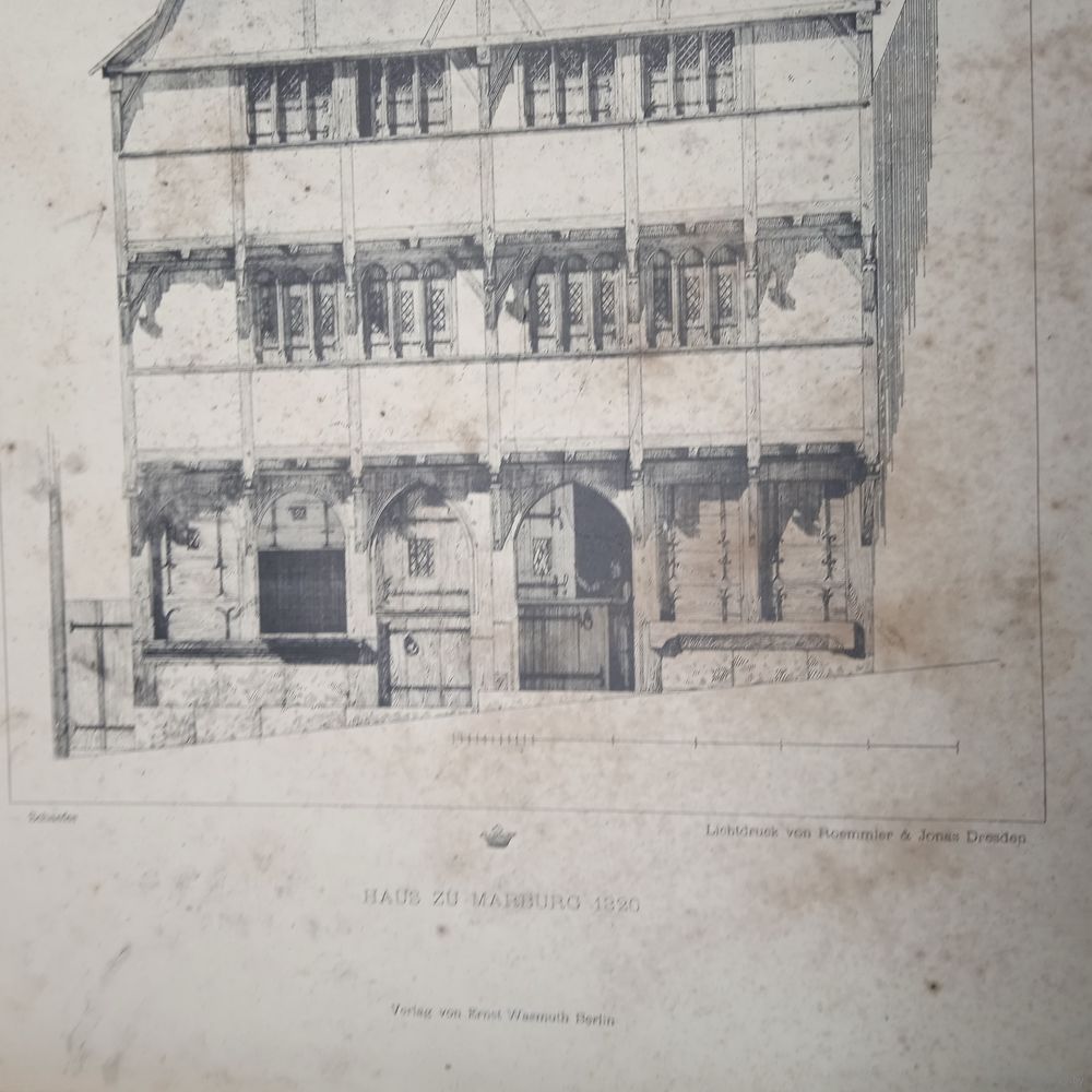 Гравюра. 19 век. HAUS ZU MARBURG 1320 48 X 32cm. Германия. РАСПРОДАЖА КОЛЛЕКЦИИ.