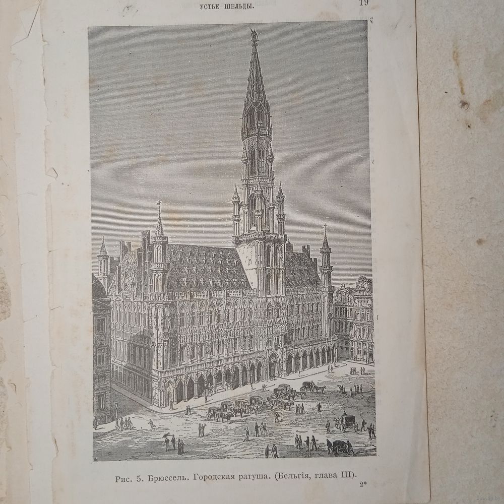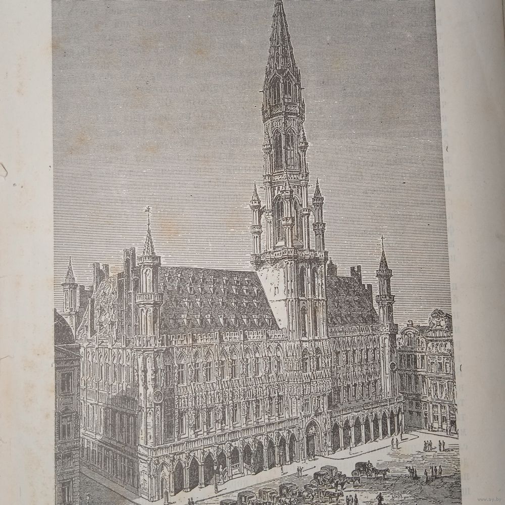Гравюра энциклопедическая Брюссель. Городская ратуша . 19век. 22х16см.