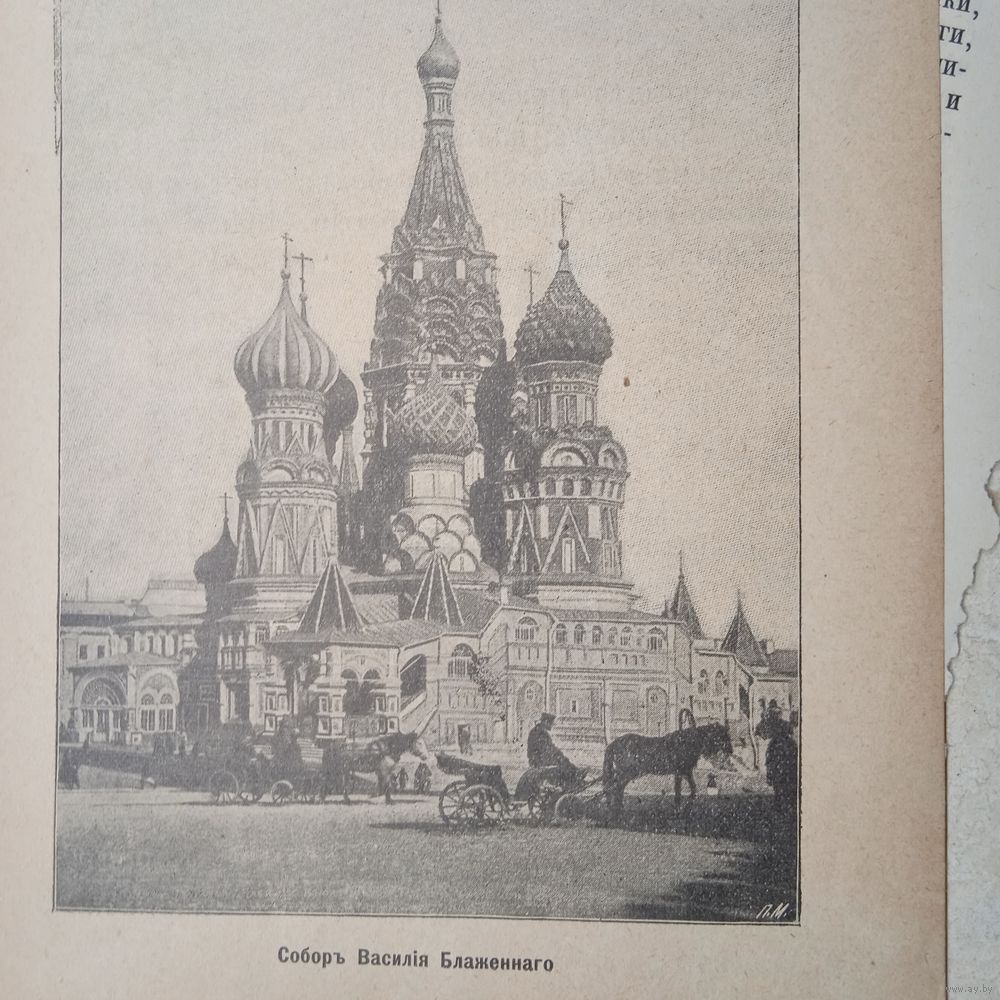 Гравюра энциклопедическая Собор Василия Блаженного. 19век. 18х13см.