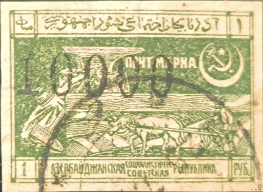Гражданская война. Азербайджан. Переоценка. 10000/1р. № 71 (Ляпин). Первый выпуск. Гашенная.