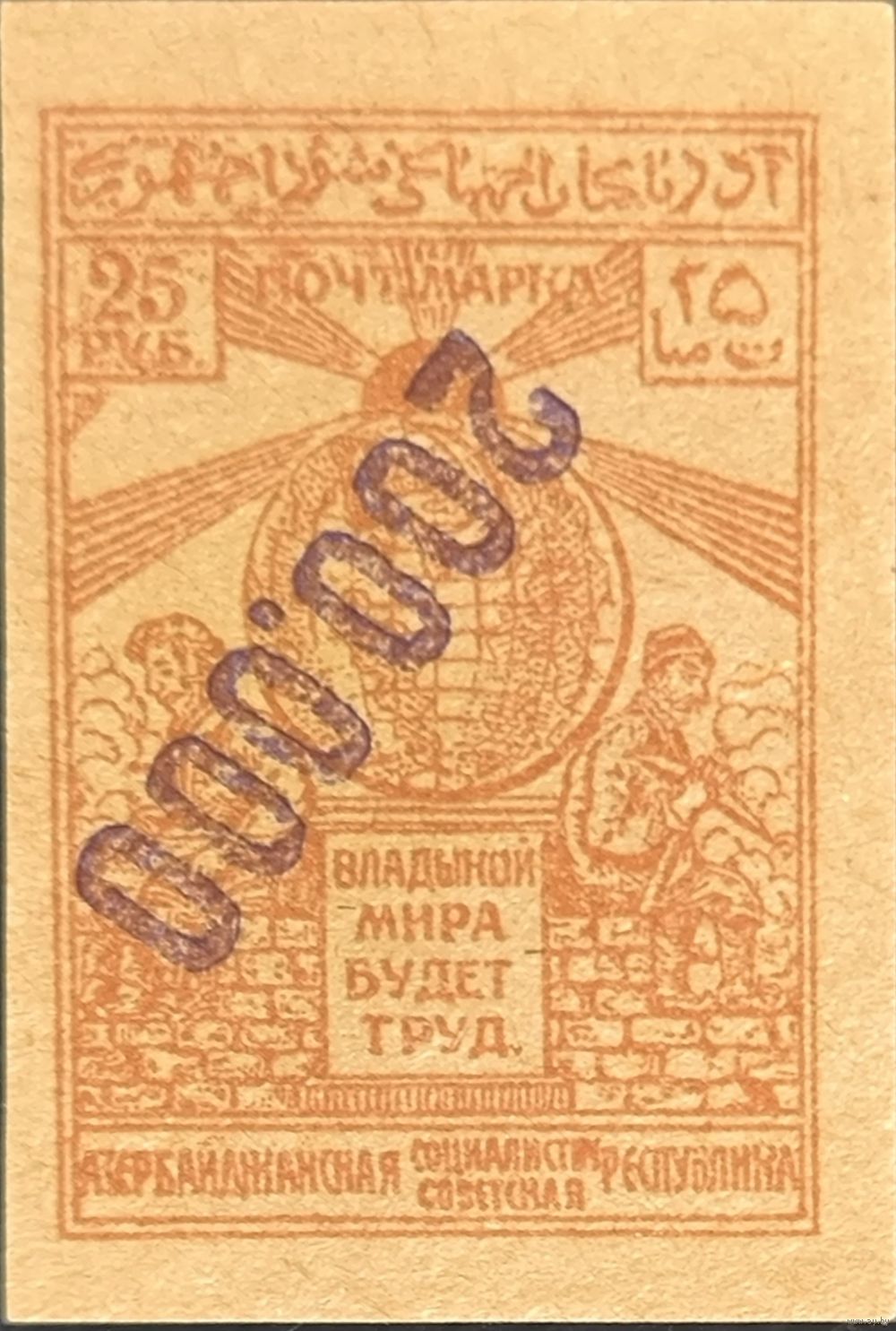 Гражданская война. Азербайджан. Переоценка каучуковым штампом. Перевернутая. 200000р/5р. № 87А (Ляпин). Надпечатка фиолетовая.