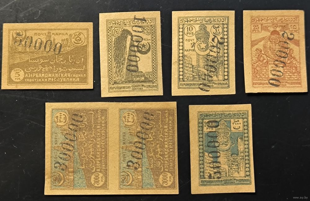 Гражданская война. Азербайджан. Переоценка металлическим ручным нумератором. Полная серия. № 79-84 (Ляпин).