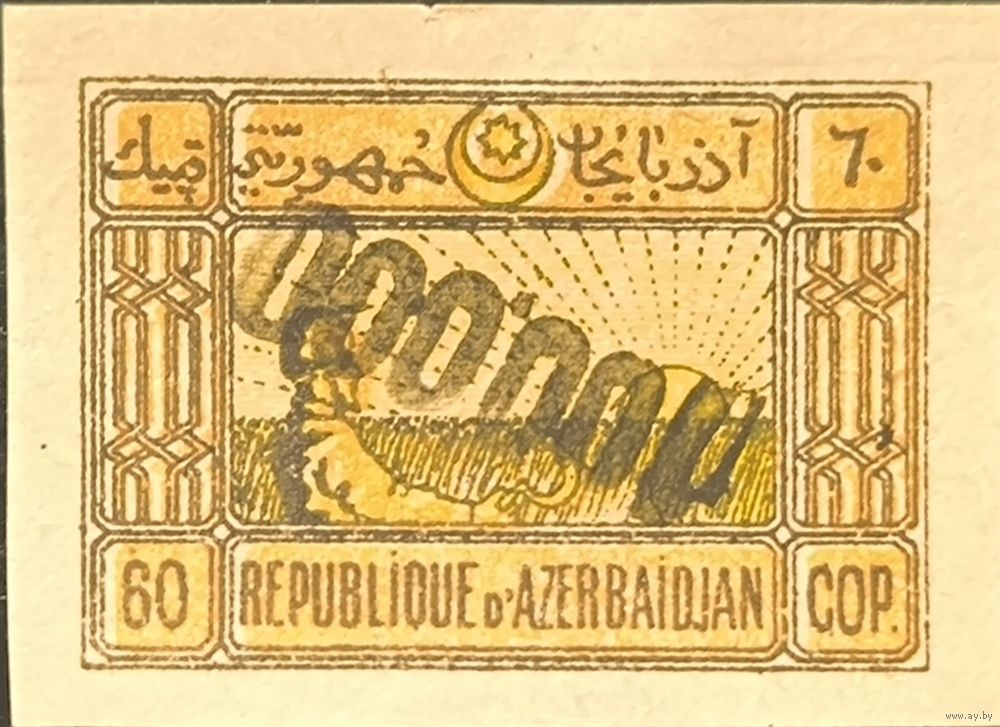 Гражданская война. Азербайджан. Переоценка каучуковым штампом 100000р/60коп. Перевернутая надпечатка. № 117 (Ляпин).