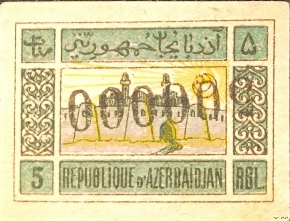 Гражданская война. Азербайджан. Переоценка металлическим нумератором. 500000р/5р. Перевернутая надпечатка. № 112 (Ляпин). Заверка.