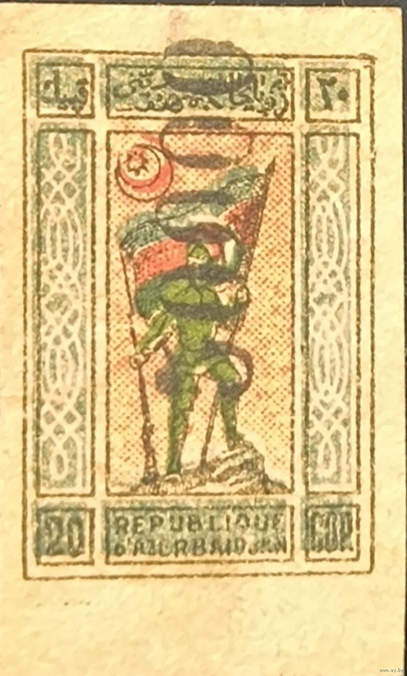 Гражданская война. Азербайджан. Переоценка металлическим нумератором. 50000р/20к. Перевернутая надпечатка. № 104 (Ляпин).