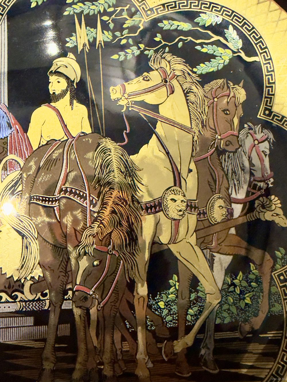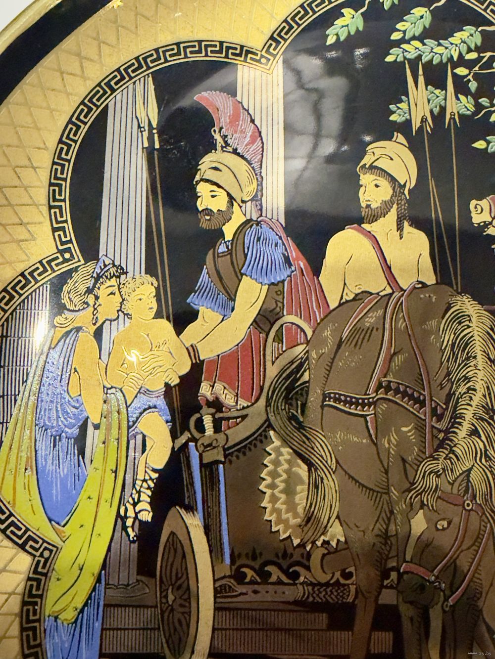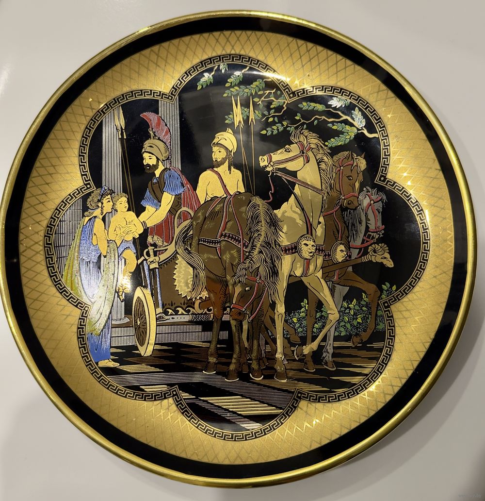 Греческая винтажная декоративная тарелка расписана вручную золотом. Диаметр 24 см.
