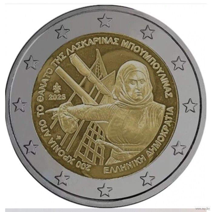 Греция 2 евро, 2025 200 лет со дня смерти Ласкарины Бубулины UNC из ролла