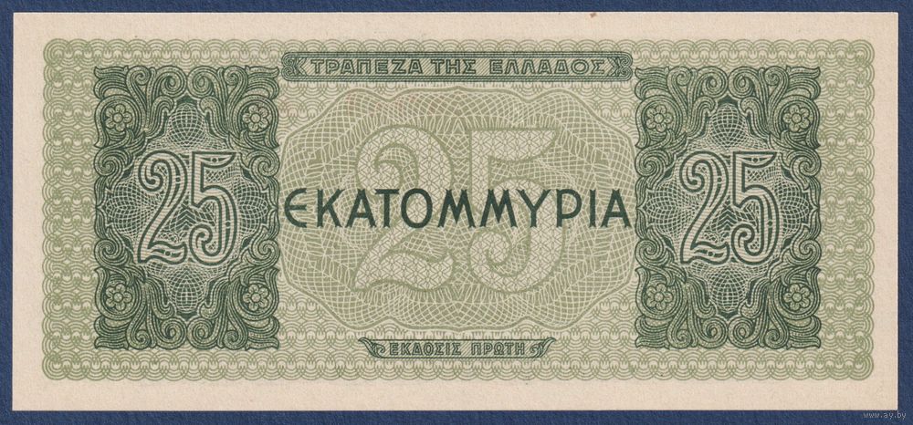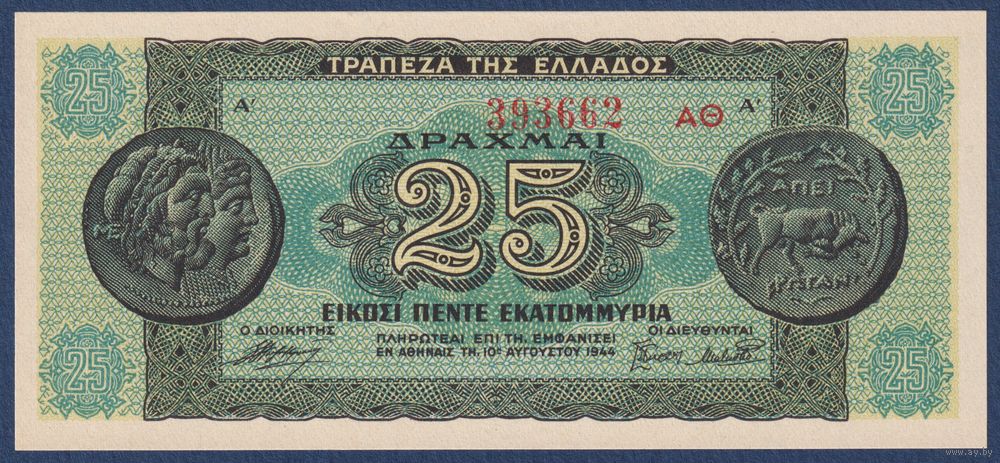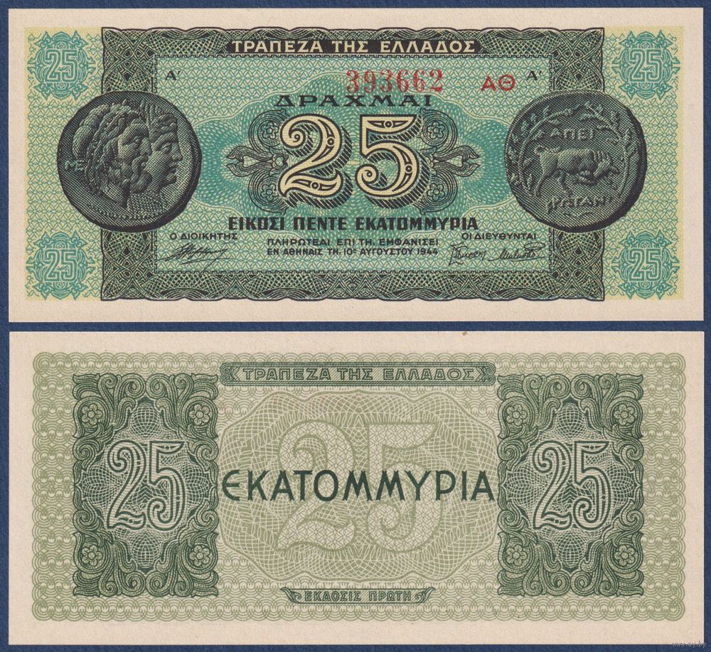 Греция, 25000000 драхм 1944 г., P-130b (AO, древняя монета), UNC