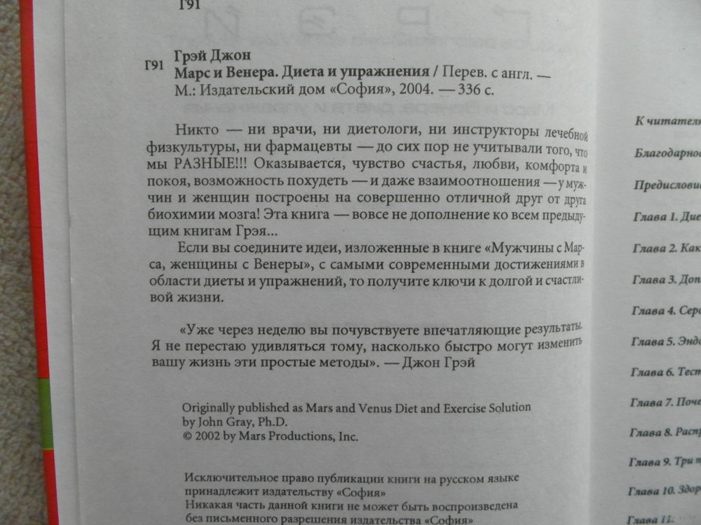 Если вы соедините идеи, изложенные в книге Мужчины с Марса, женщины с Венеры , с самыми современными достижениями в области диеты и упражнений, то получите ключи к долгой и счастливой жизни. Уже через неделю вы почувствуете впечатляющие результаты. Я не перестаю удивляться тому, насколько быстро могут изменить вашу жизнь эти простые методы (Джон Грэй).