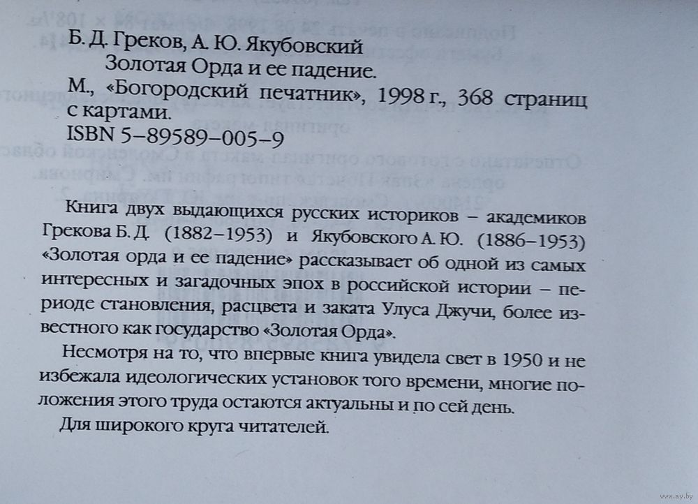 Греков Б. Д., Якубовский А. Ю. Золотая Орда и ее падение. Памятники русской исторической мысли. Москва. Богородский печатник. 1998 г. 368 с. Твердый переплет. Обычный формат.