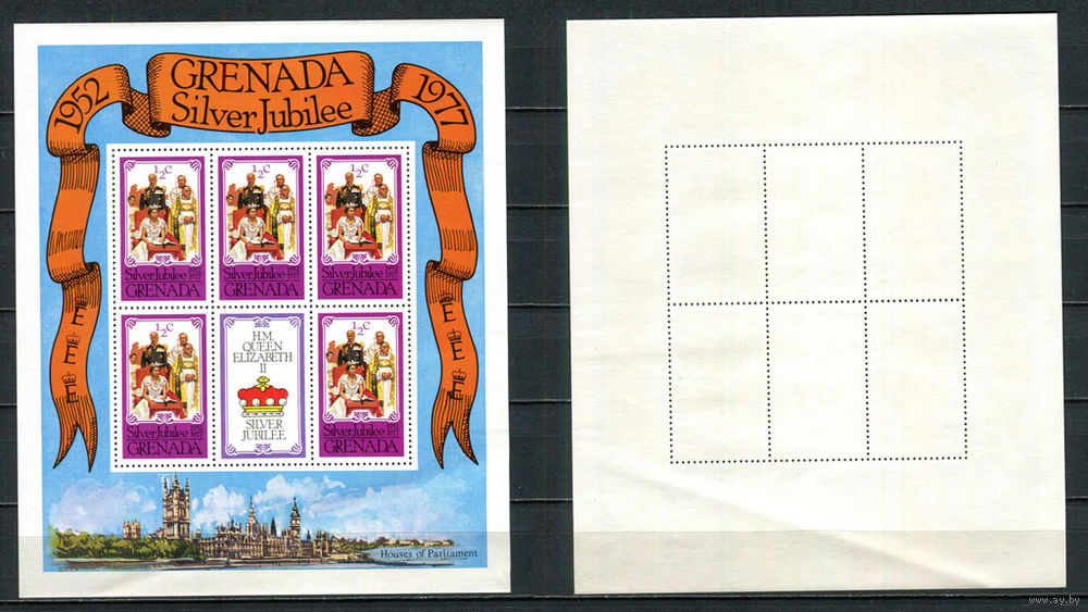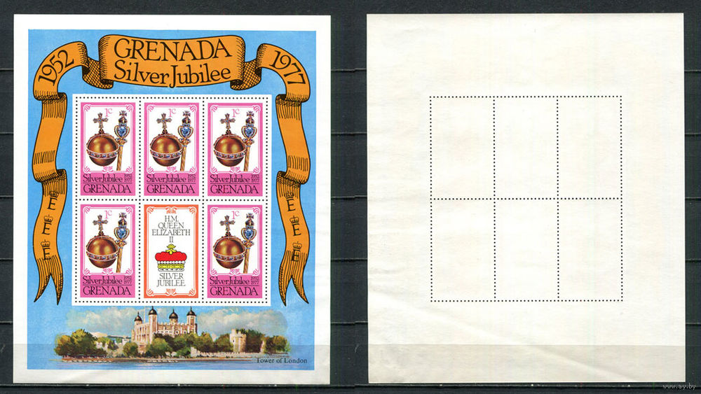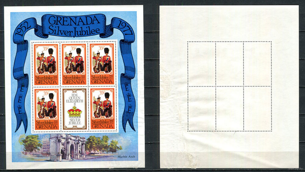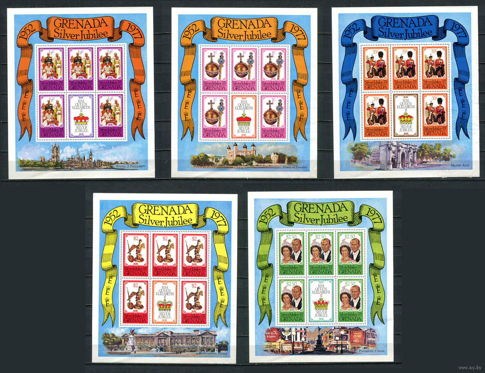 Гренада - 1977 - 25-я годовщина восшествия на престол королевы Елизаветы II - (с помятостьями. Ном. 35 с пвреждением клея) - [Mi. 822C-826Cklb] - полная серия - 5 малых листов. MNH. (Лот 48HV)-TG3P30