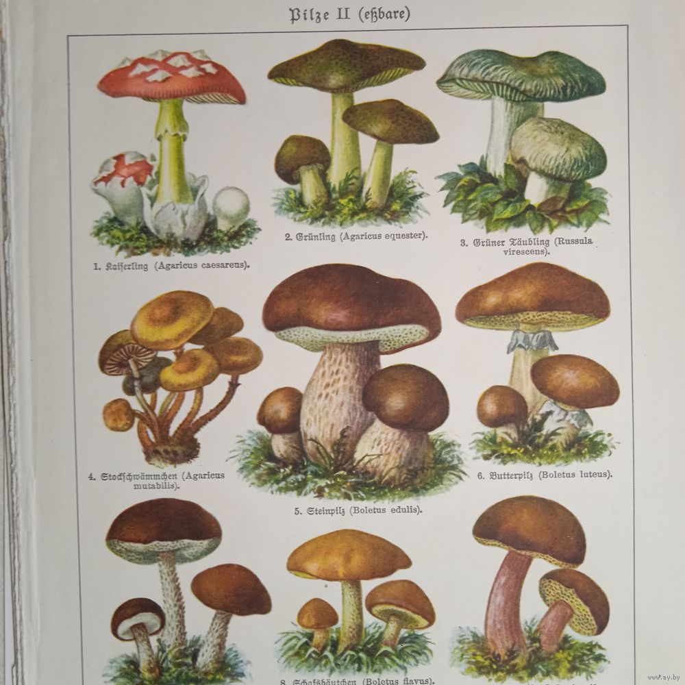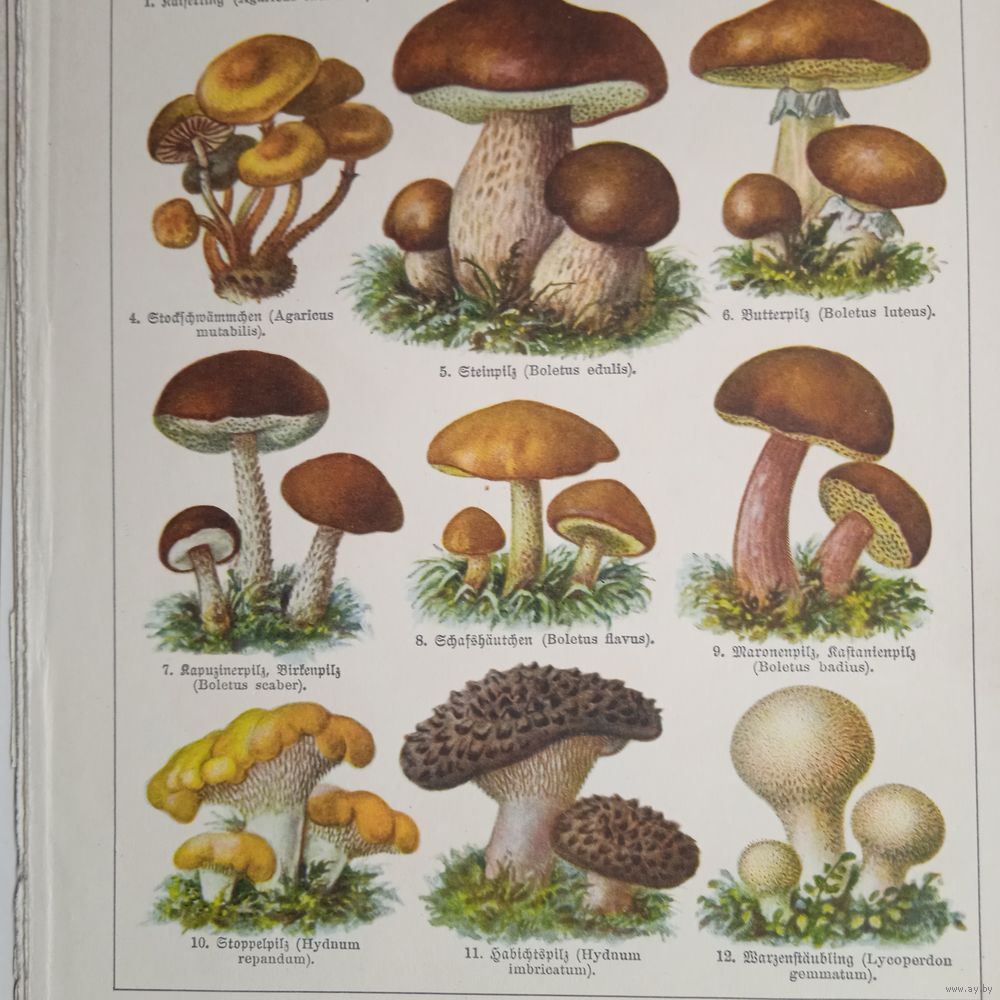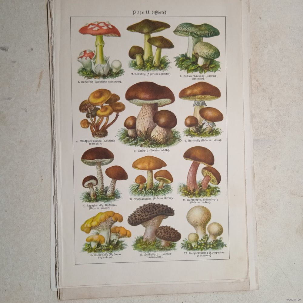 ГРИБЫ 2. Антикварная хромолитография конца 19 века. Германия. 25х17см. РАСПРОДАЖА КОЛЛЕКЦИИ.