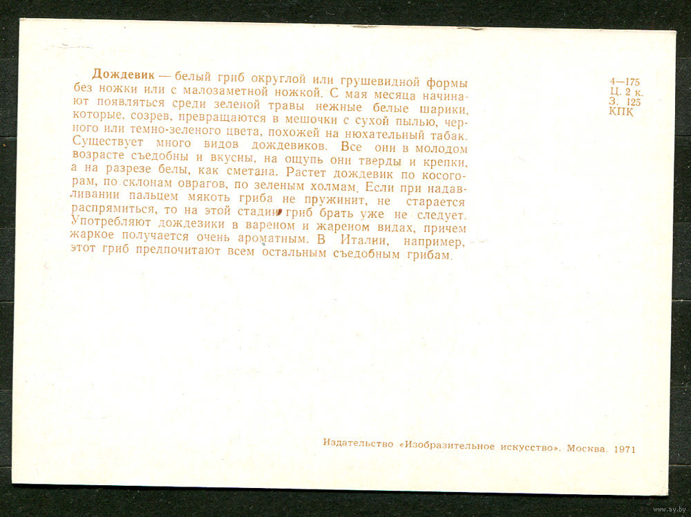 Грибы. Дождевик. 1971