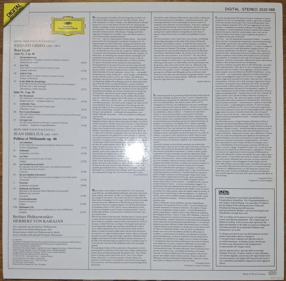 Grieg, Sibelius, Berliner Philharmoniker, Herbert von Karajan – Peer Gynt Suites 1 & 2 / Pelleas Et Melisande