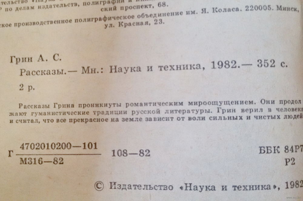 Грин А.С-Рассказы- Минск, Наука и техника, 1982г, с.350, тираж 95.000экз, мягкий переплет.