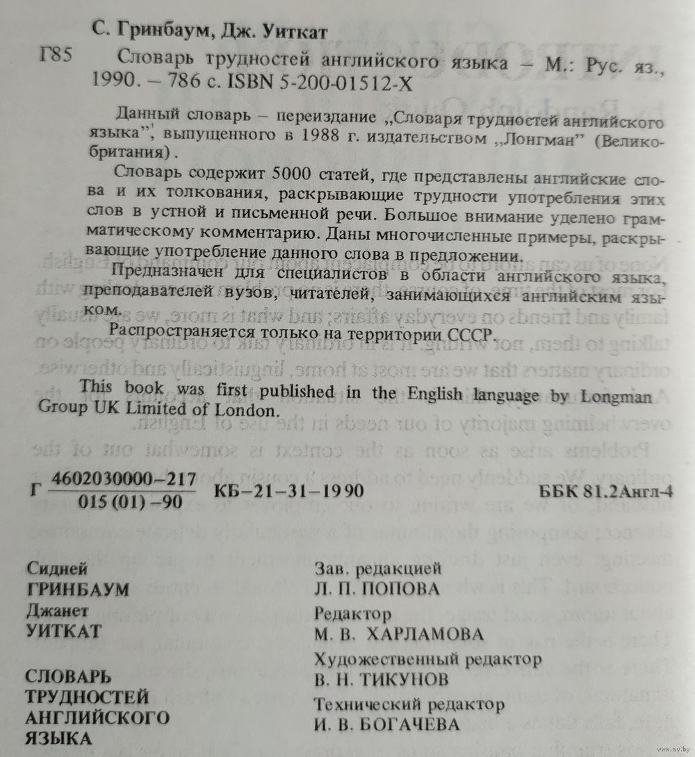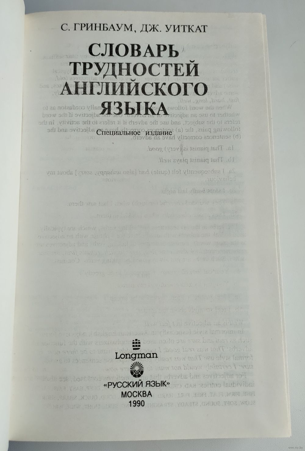 Гринбаум С., Уиткат Дж. Guide to english usage / Словарь трудностей английского языка. М.: Русский язык, 1990г., 786 с. Твёрдый переплёт. Обычный формат.