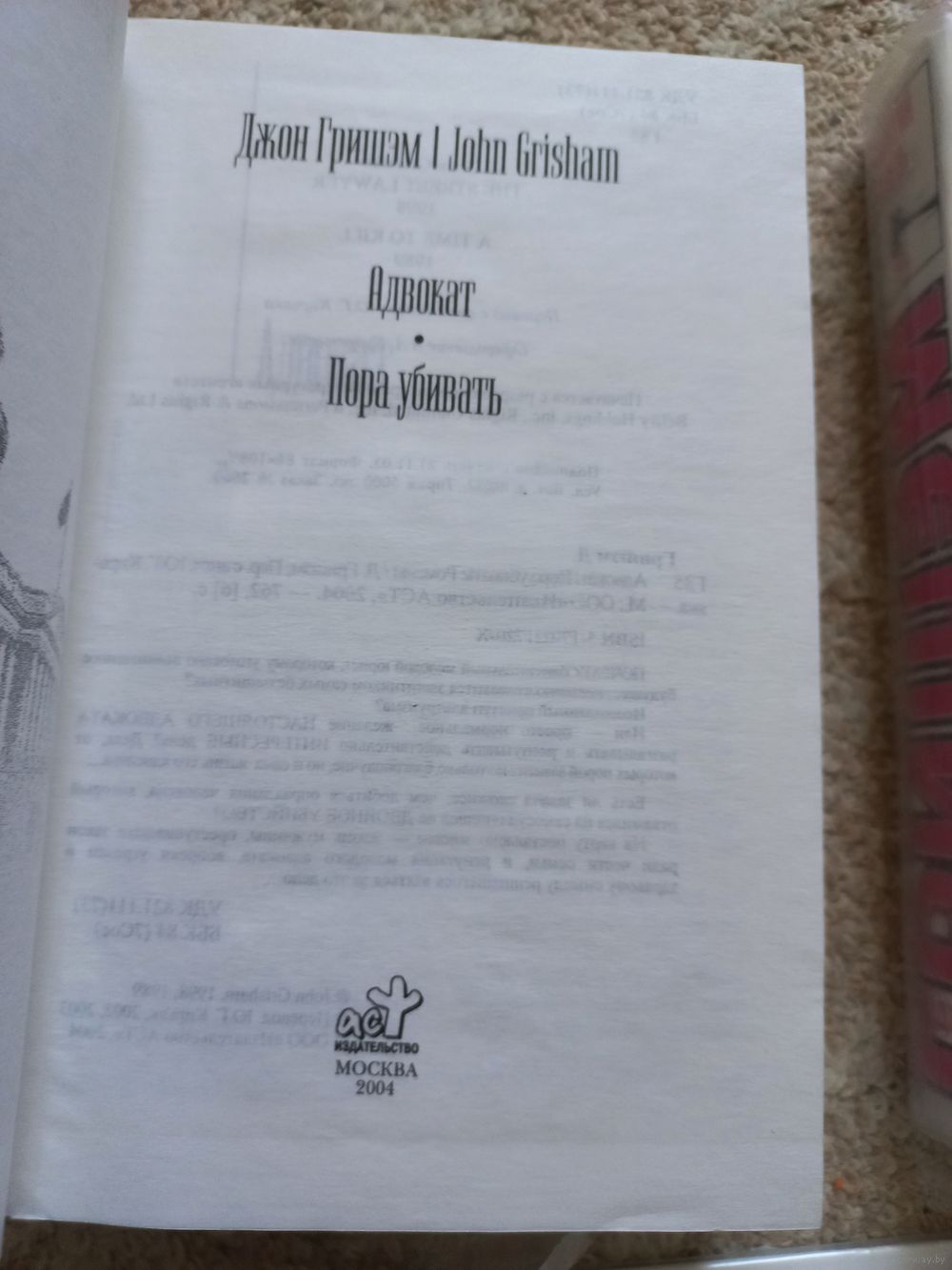 Содержание: Вердикт (роман, перевод И. Дорониной), Завещание (роман, перевод И. Дорониной), Золотой дождь (роман, перевод М. Тугушевой, А. Санина), Партнер (роман, перевод Ю. Кирьяка), Шантаж (роман, перевод В. Заболотного), Адвокат (роман, перевод Ю. Кирьяка), Пора убивать (роман, перевод Ю. Кирьяка), Фирма (роман, перевод Ю. Кирьяка), Клиент (роман, перевод Т. Матц). Тираж 5000 - 5100 экз. Джон Гришэм (John Grisham), полное имя Джон Рэй Гришэм (John Ray Grisham) — американский писатель, известный своими криминально-детективными романами.