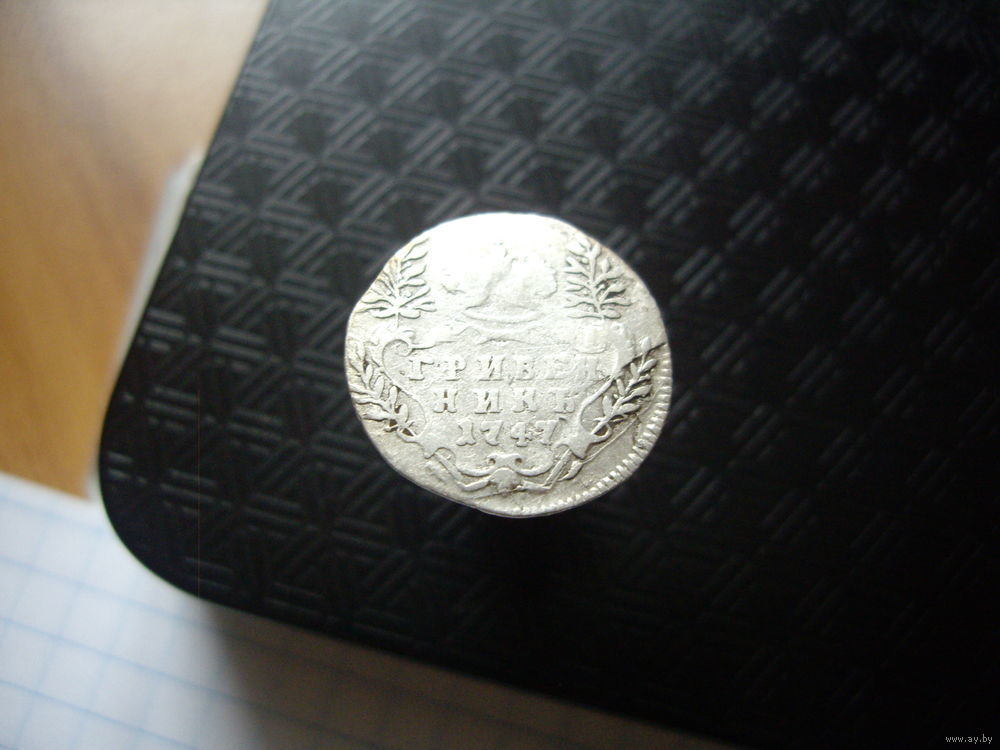 Аверс: В центре изображен картуш с надписью в две строки: ГРИВЕН НИКЪ Под надписью год чеканки — 1747 Над картушем — корона Российской империи. Слева и справа от картуша по две лавровые ветви.