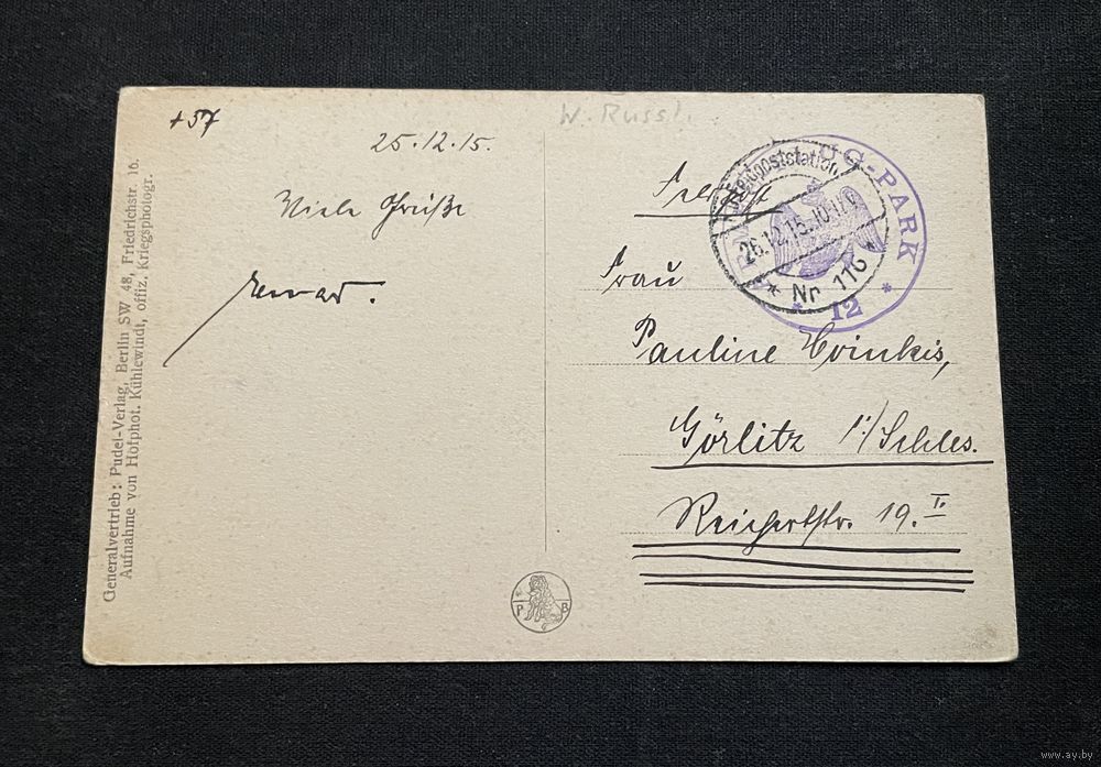Агульны дыстрыб'ютар: Pudei-Verlag, Берлін SW 48, Friedrichstr. 16. Знята прыдворным фатографам Кюлевінтам, афіц. ваенным фатографам.