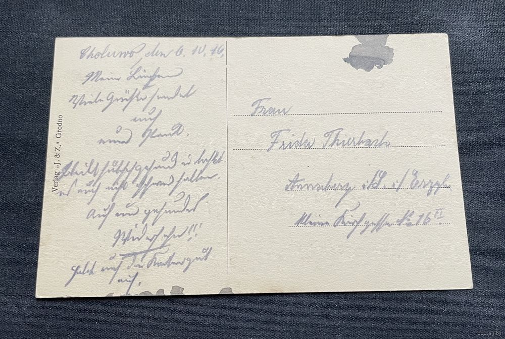 Арыгінальная нямецкая паштоўка часоў 1-й Сусьветнай вайны.