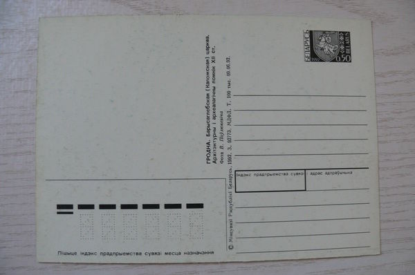 Гродно. Церковь; 1992, чистая, ДМПК Беларусь (марка -- Погоня).