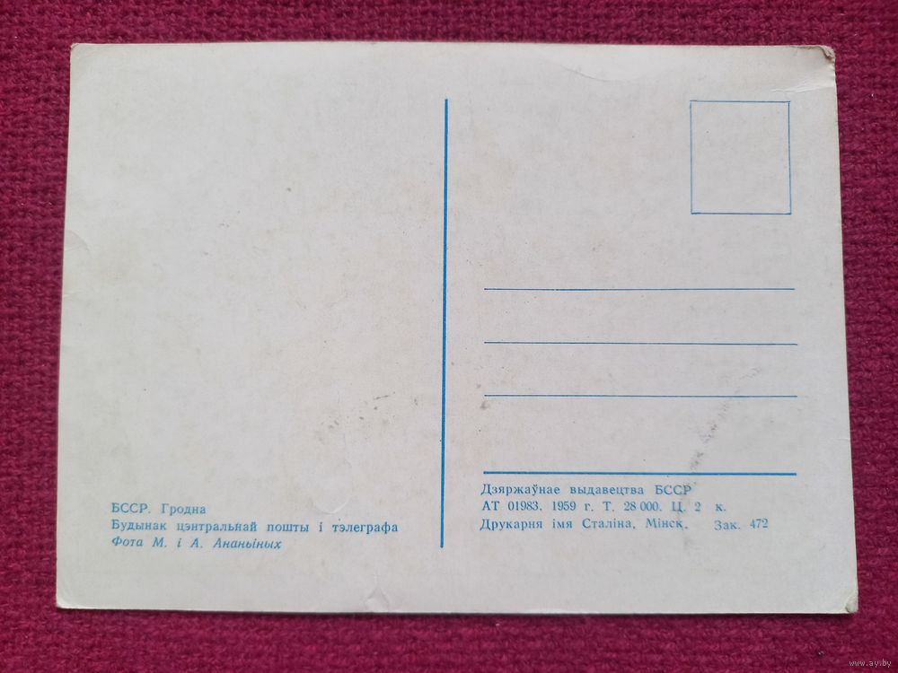Гродно. Здание центральный почты и телеграфа. Ананьины 1959 г. Чистая.