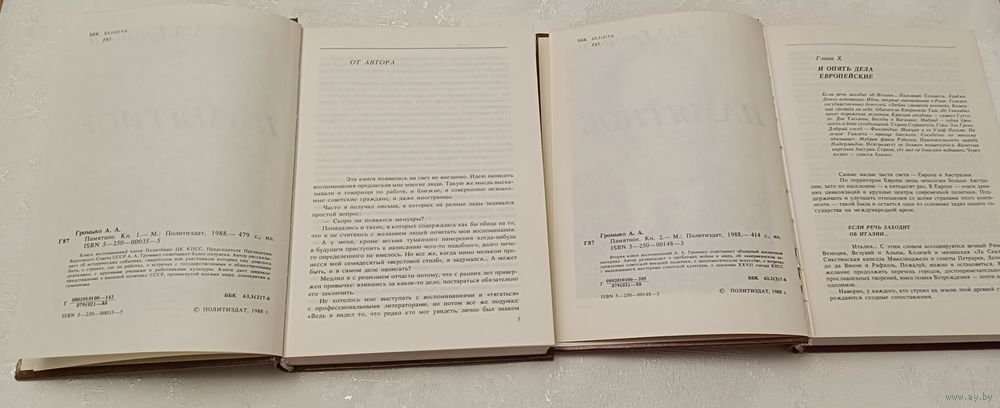Громыко Андрей. Памятное. Книга 1-2.- М.: Политиздат, 1988. - 479 + 414 с., ил., твердый переплет.