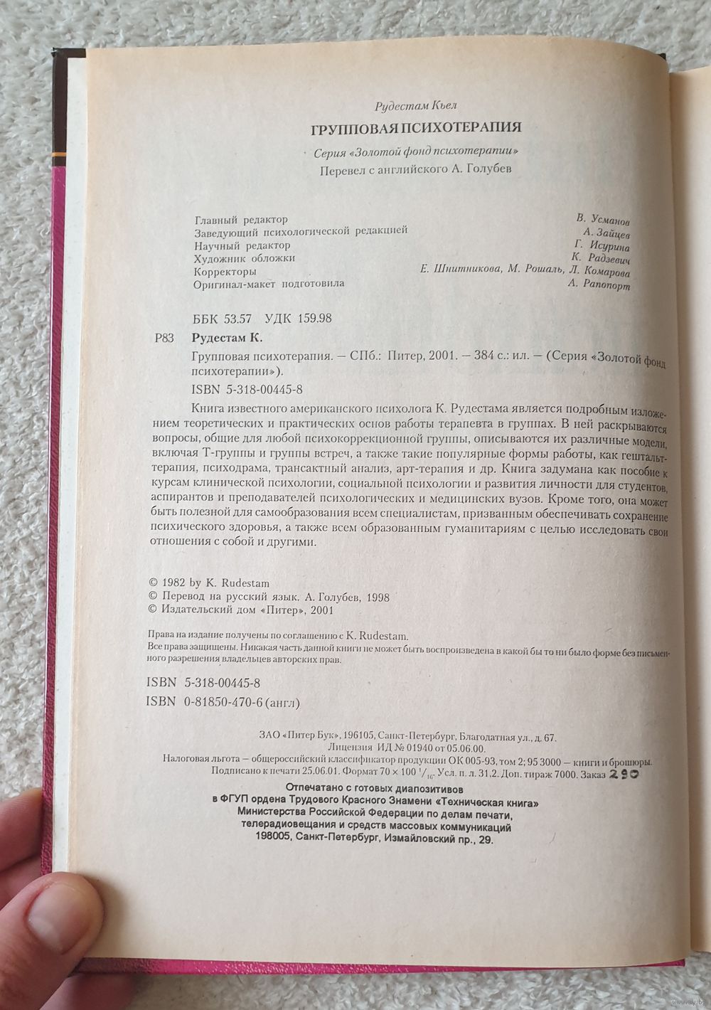 Книга известного американского психолога К.Рудестама является подробным изложением теоретических и практических основ работы терапевта в группах. В ней раскрываются вопросы, общие для любой психокоррекционной группы, описываются их различные модели, включая Т-группы и группы встреч, а также такие популярные формы работы, как гештальт-терапия, психодрама, трансактный анализ, арт-терапия и др. Книга задумана как пособие к курсам клинической психологии, социальной психологии и развития личности для студентов, аспирантов и преподавателей психологических и медицинских вузов. Кроме того, она может быть полезной для самообразования в области исследования малых групп и для проведения психотерапевтических консультаций, а также для практиков, которые хотят пополнить свои профессиональные знания и усовершенствовать методы работы. К ним относятся психологи, медсестры в психиатрических клиниках, работники социальных служб, служители церкви и вспомогательный персонал в учреждениях, призванных обеспечивать сохранение психического здоровья. Наконец, книга может принести пользу всякому, кому интересно, что происходит, когда люди объединяются в малые группы с целью исследовать свои отношения с собой и другими.