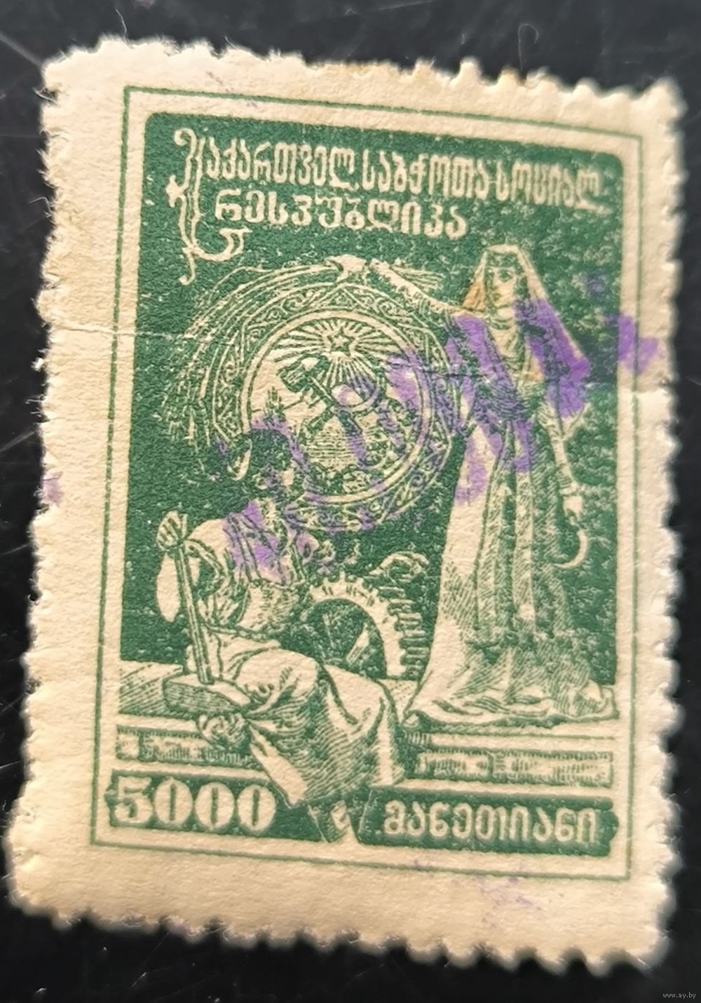 Грузинская ССР. Первая переоценка. Стандартный выпуск. 40000р/5000р. № 32 (Ляпин). Надпечатка фиолетовая.