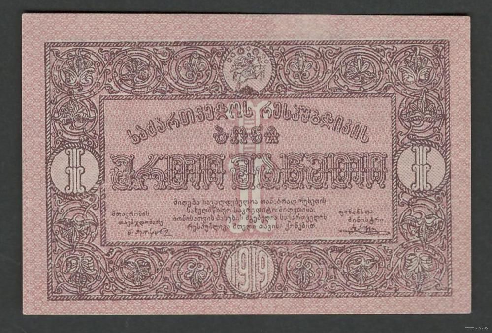 Грузия 1 рубль 1919 года. Тип Р-7. Состояние UNC