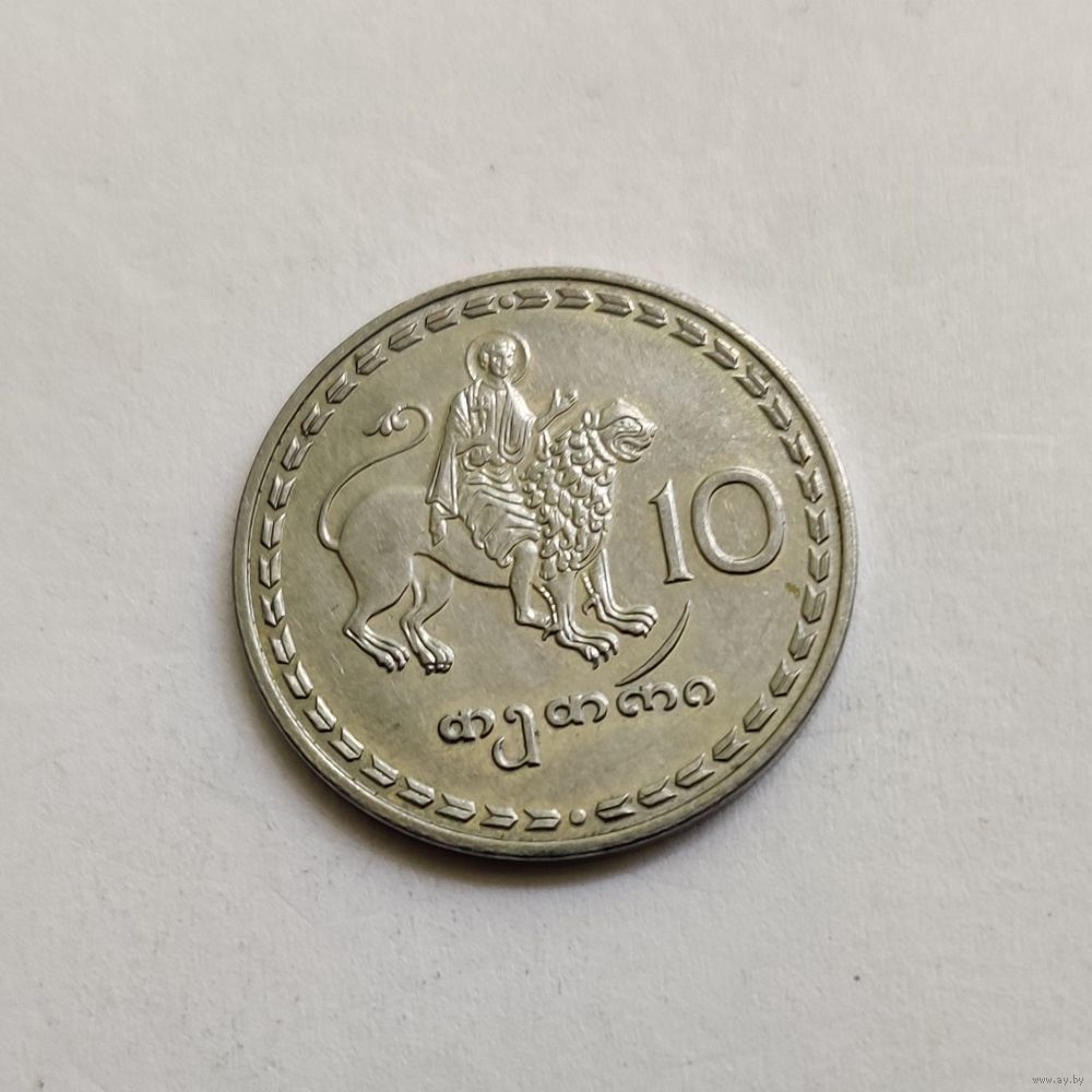 Номер  KM# 79  Страна  Грузия  Период  Государство Грузия (1993 - 2025)  Валюта  Грузинский лари  Вид чекана  Регулярный чекан  Номинал  10 тетри  Год  1993  Материал  Нержавеющая сталь  Гурт  Гладкий  Форма  Круг  Отношение авс/рев  Монетное (180°)  Вес (g)  3  Диаметр (mm)  22  Толщина (mm)  1,27