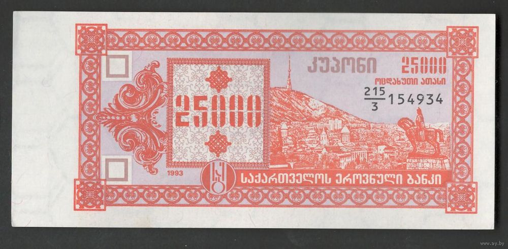Грузия 25000 купонов 1993 года. Тип P-40. Состояние UNC